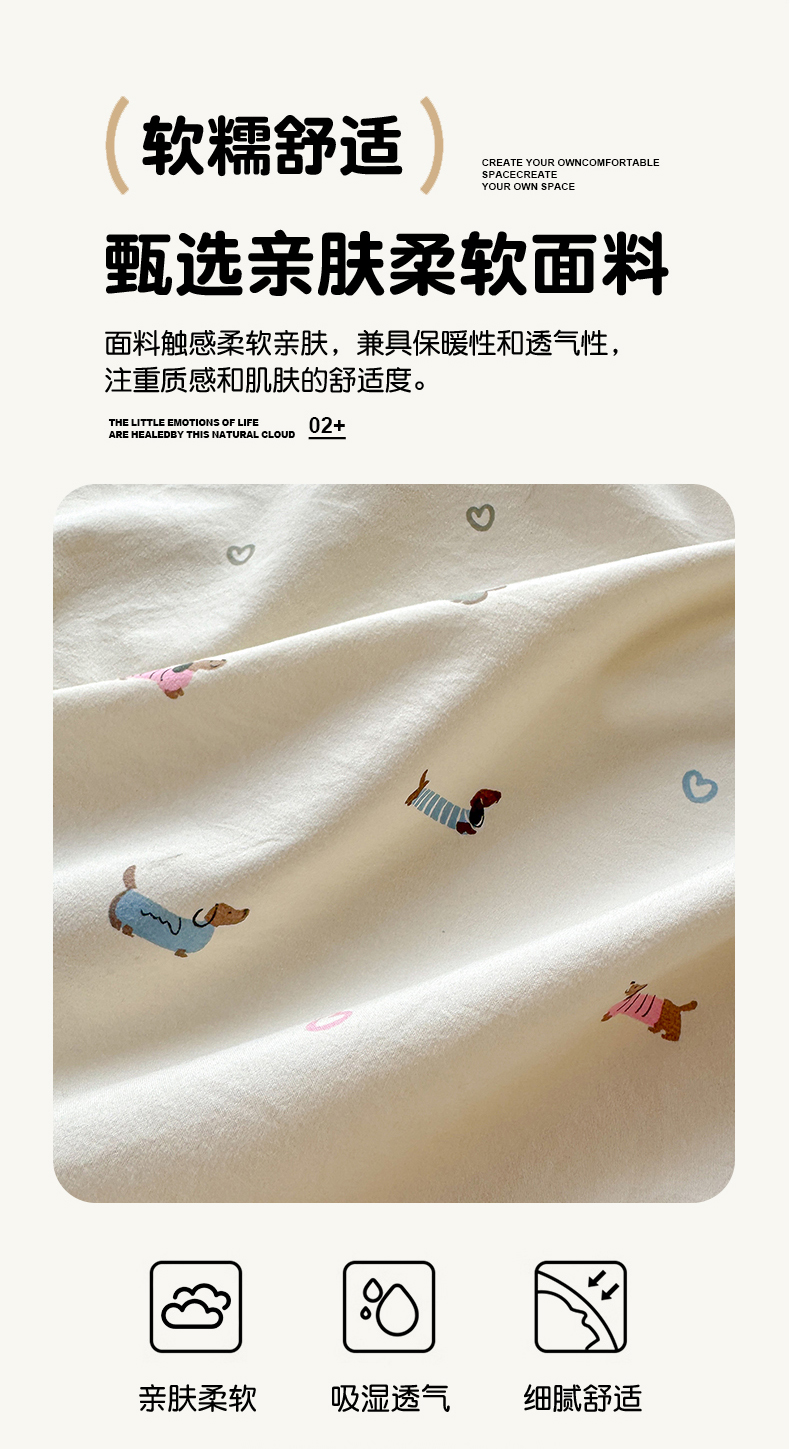 (总)沐芷 2026 高克重110g泡芙棉四件套A类床上用品被套宿舍床单三件套【提供买家秀】,绅士小狗,咖兔花园,可可猫条,蓝丝带,领结小猫,别看小狗,猫咪集合,绵绵奶兔,苹果猫,奶油结兰,青苹果乐园,秋末南瓜,软萌小脑袋,星月糖粒,悦悦小兔,樱桃笔记,线条腊肠狗