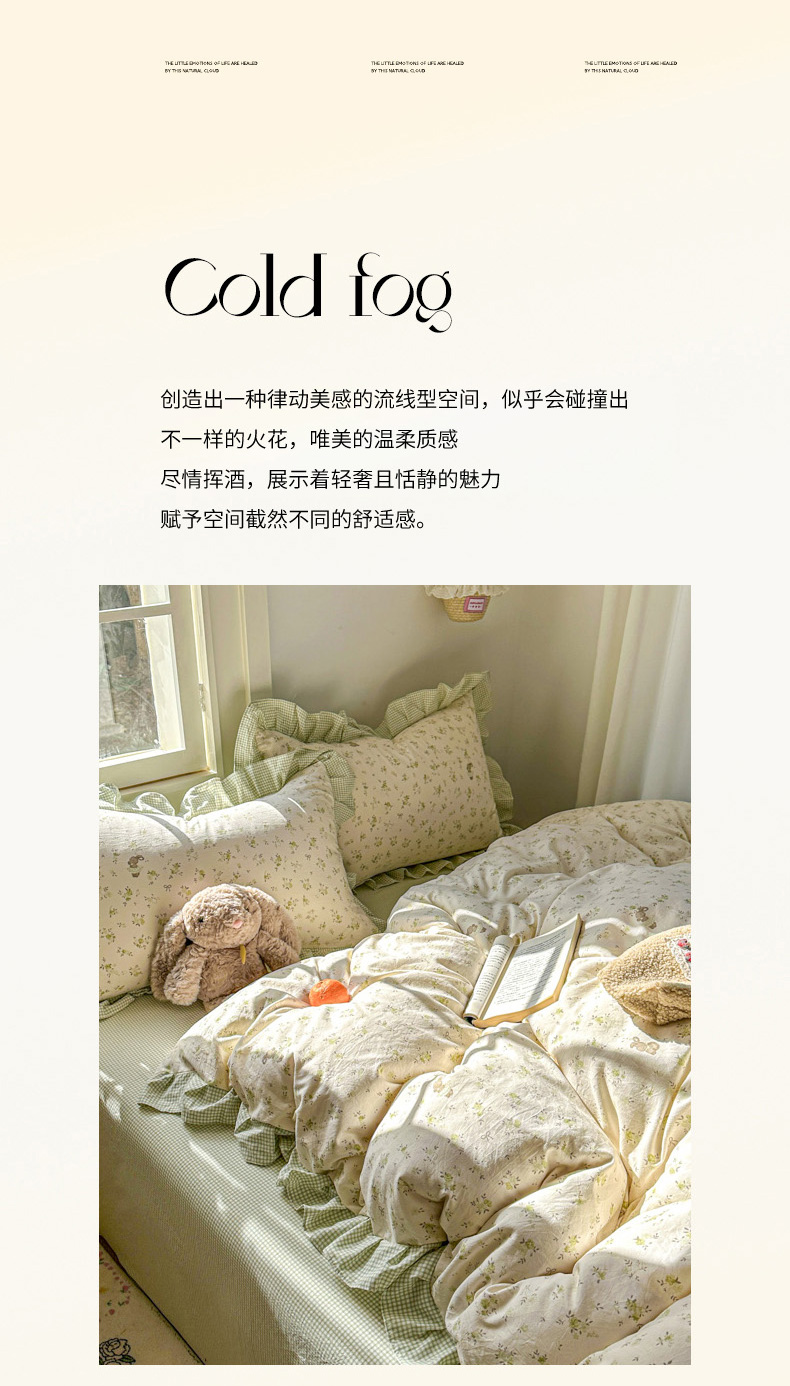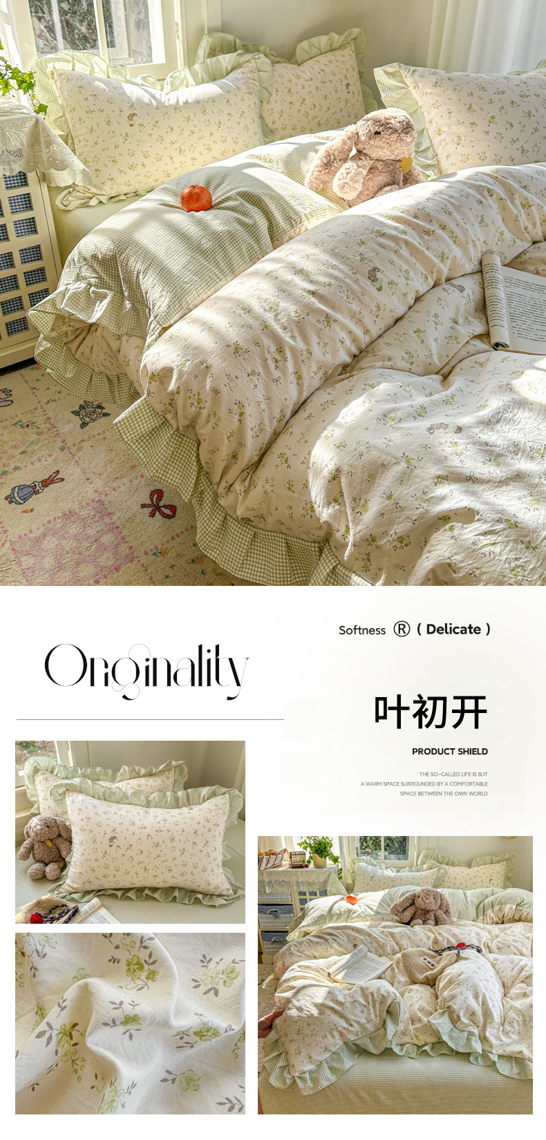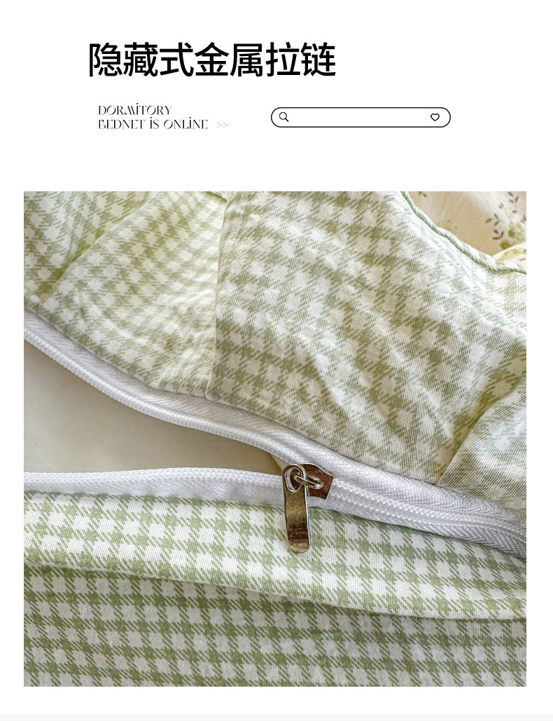 商品名称:柒月家居 2026新款韩系仿棉小格花边四件套 叶初开