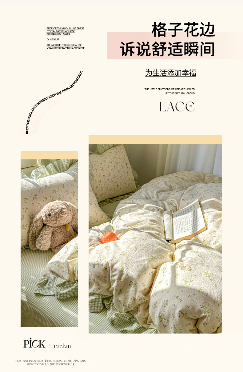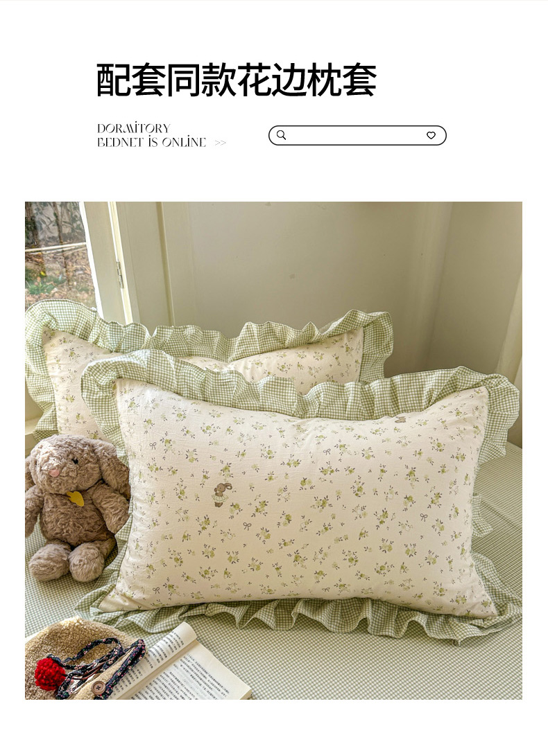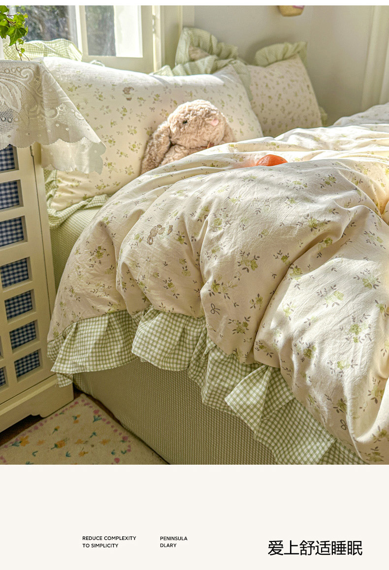 柒月家居 2026新款韩系仿棉小格花边四件套 叶初开