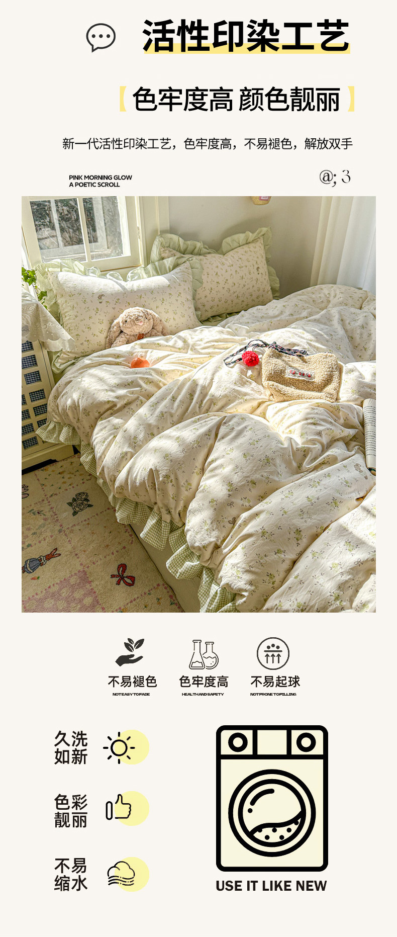 3、通州区市场监督局友情提醒,近期涉及到床上用品不褪色不掉毛不缩水的投诉和以世界知名品牌图案为面料的床品举报较多。请各商家自检自查,对照整改或进行下架处理。