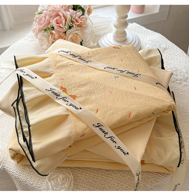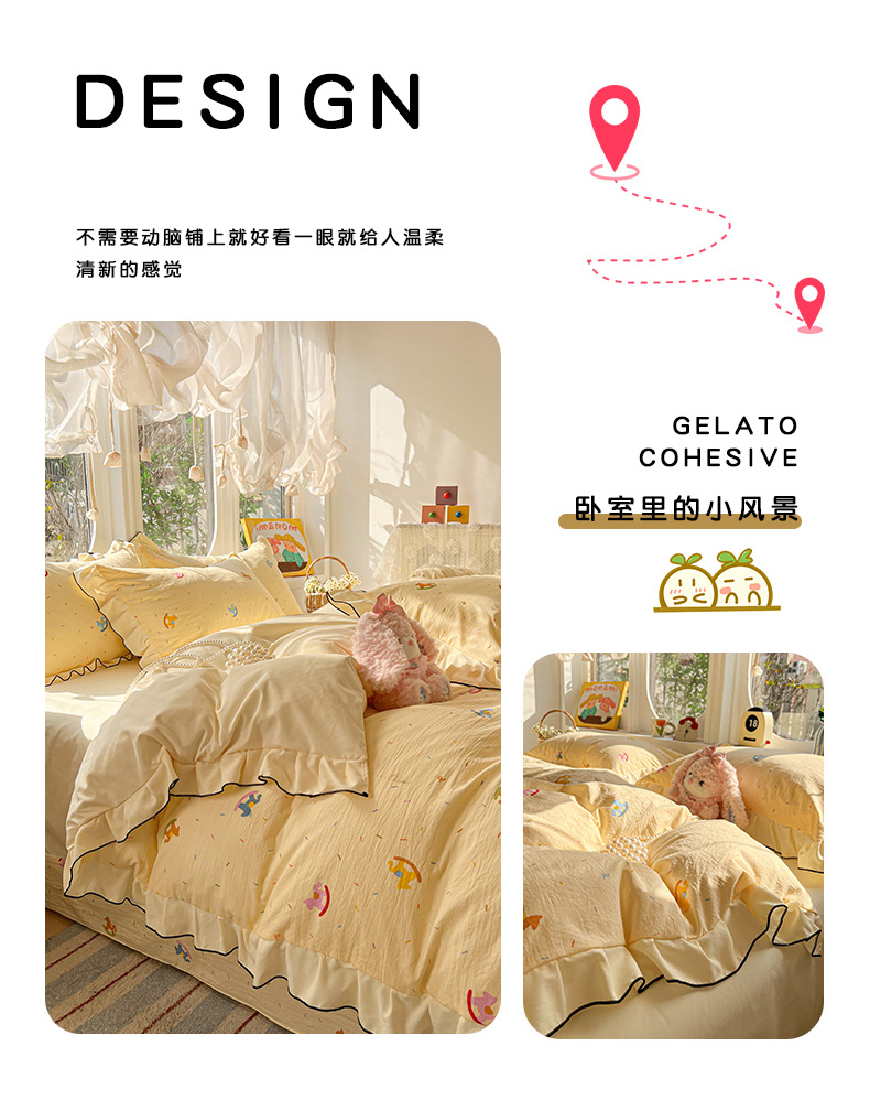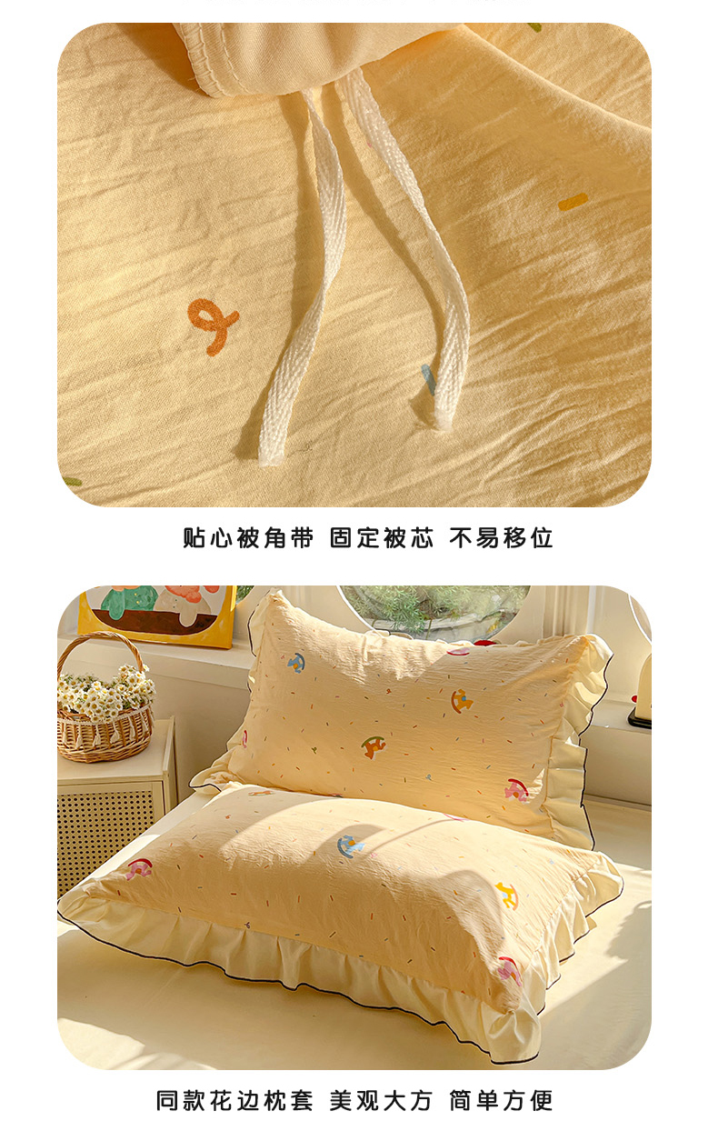 莱越家纺 2026新款A类仿棉四件套古法水洗棉法式工艺花边四件套 童年木马
