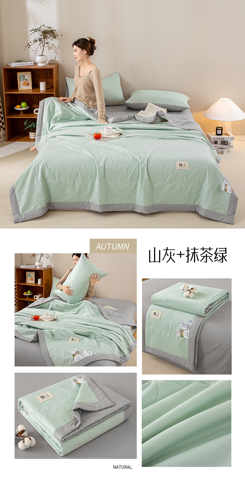 • 91家纺网 家纺一手货源 找家纺 憨豆家纺 2026新款全棉纯棉棉花夏被夏凉被空调被直播(包检测)风格二 山灰+抹茶绿