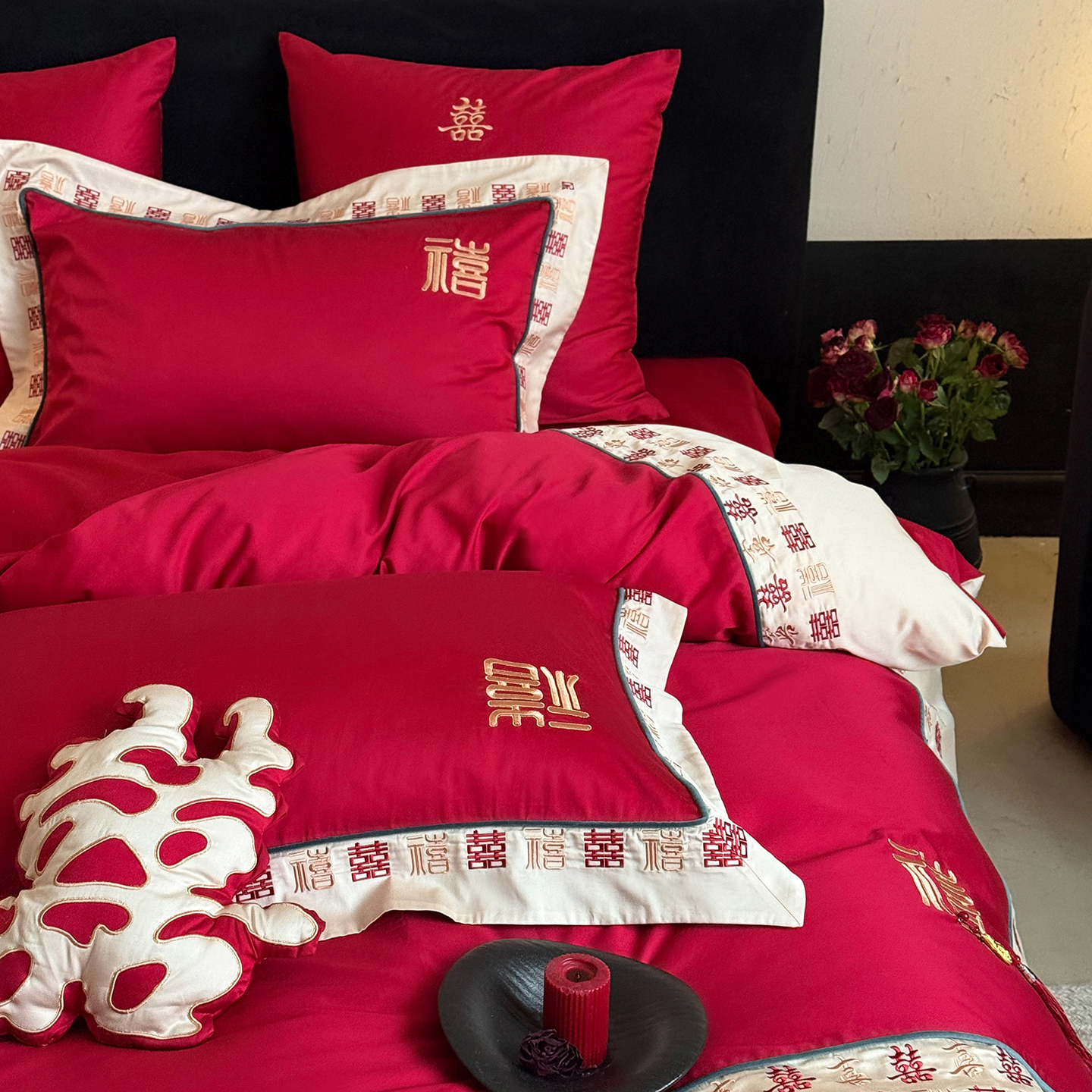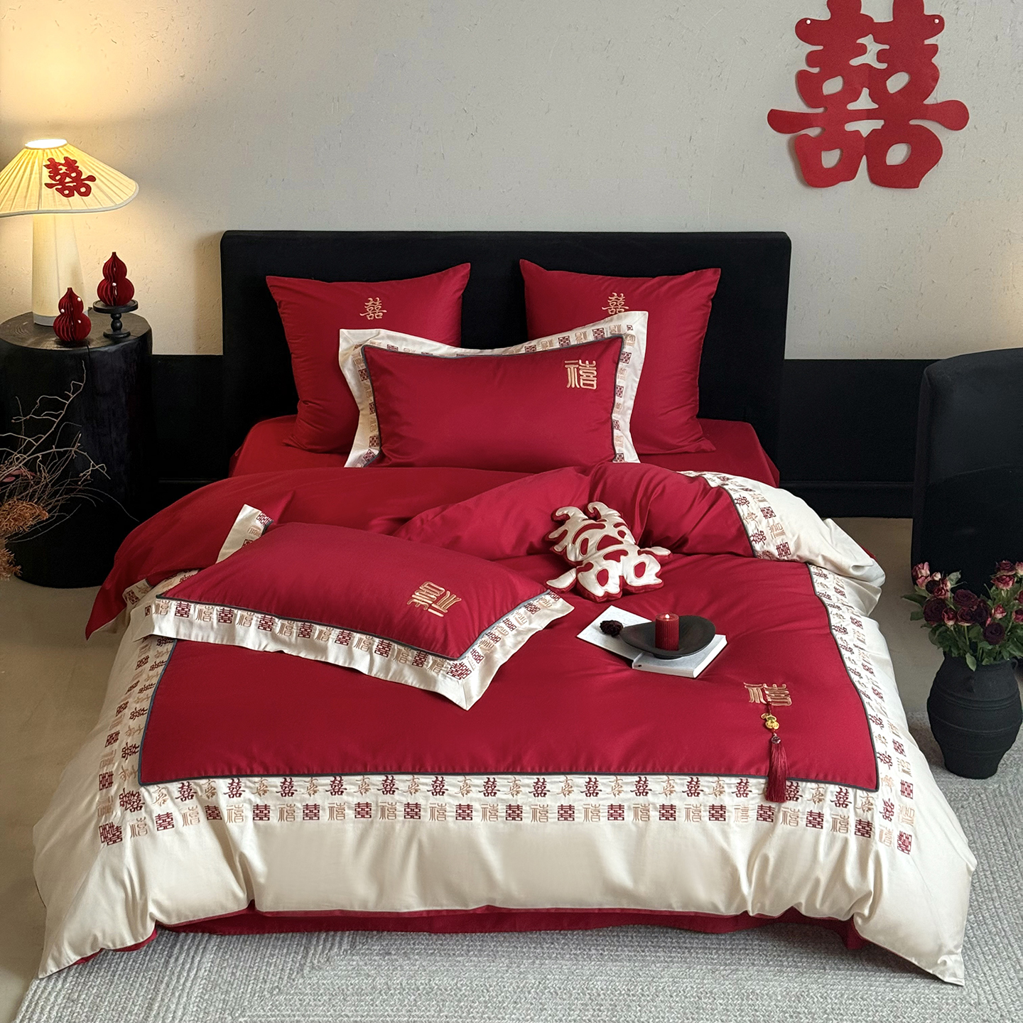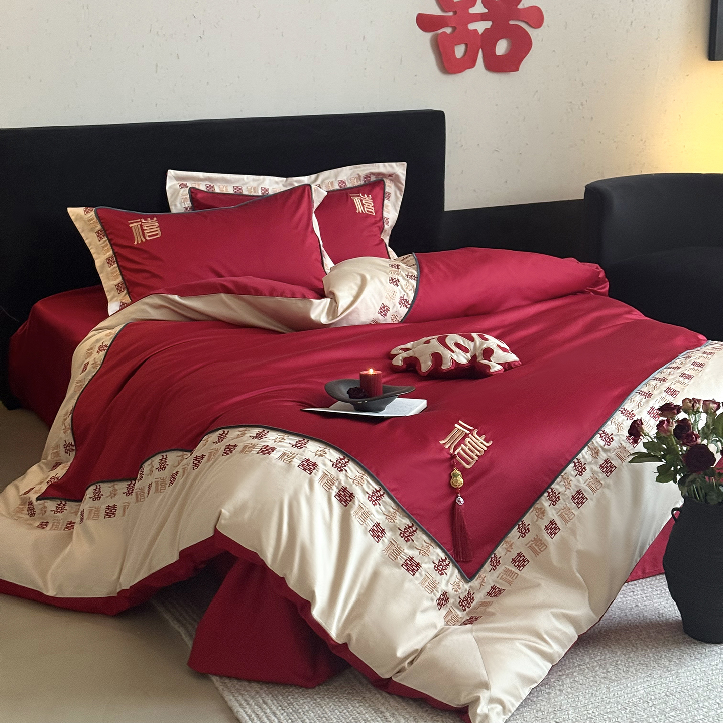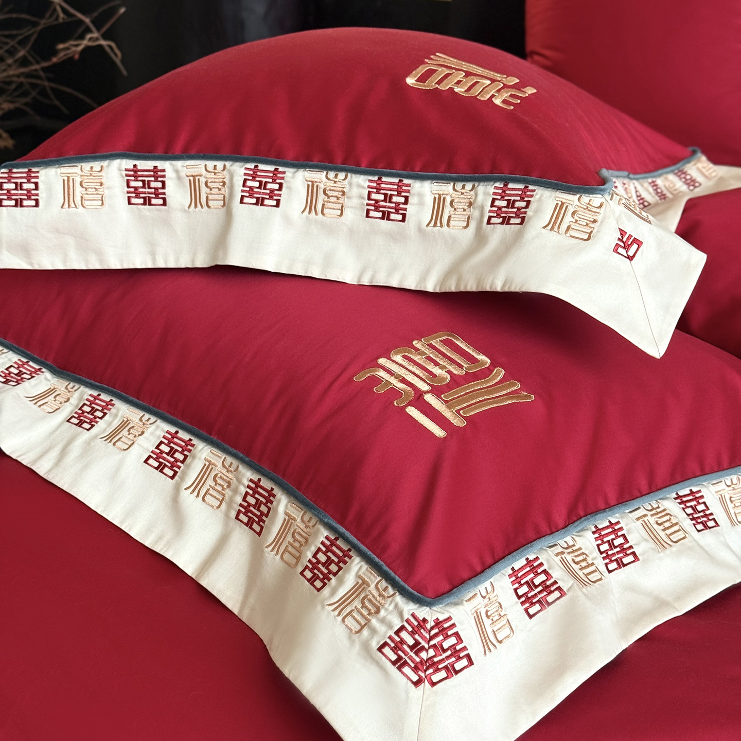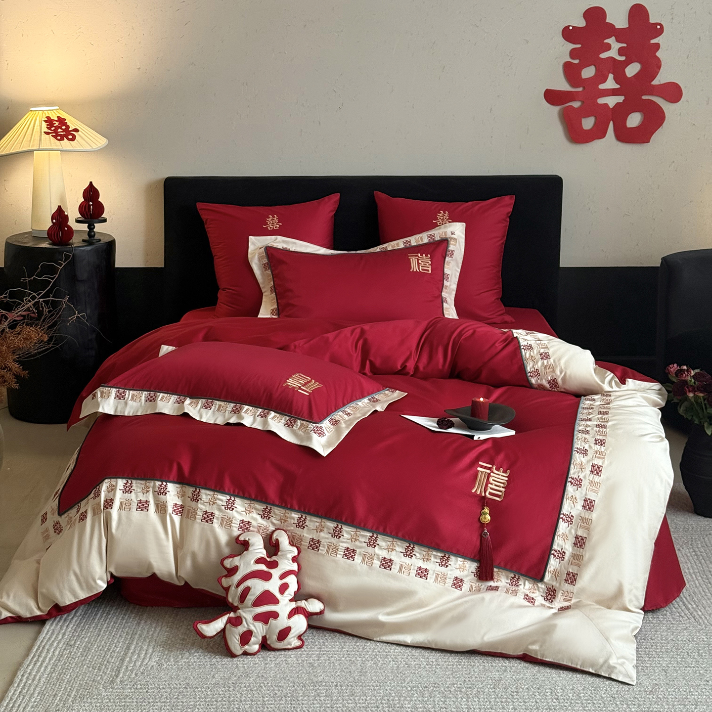 (总)江涞 2026新款100支长绒棉进口高端刺绣可摘卸流苏四件套-迎喜(淘宝券后不低于 418/438)