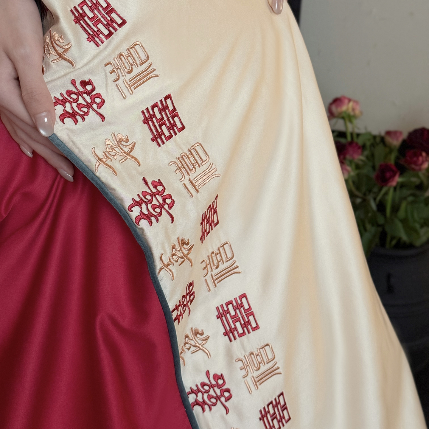 (总)江涞 2025新款高克重牛奶绒刺绣四件套-花月,花月-高级红