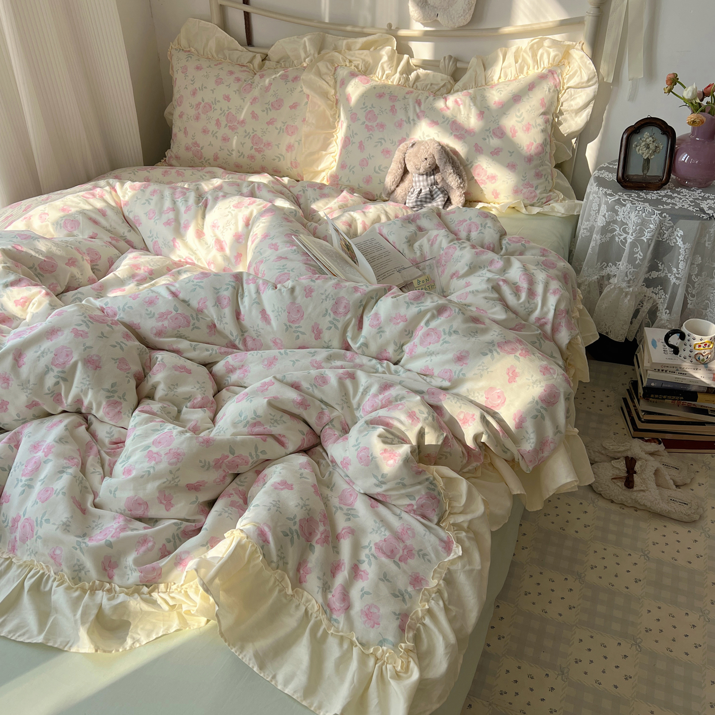 (总)桃喜 2026新款韩式全棉纯棉花边款四件套 会员-3