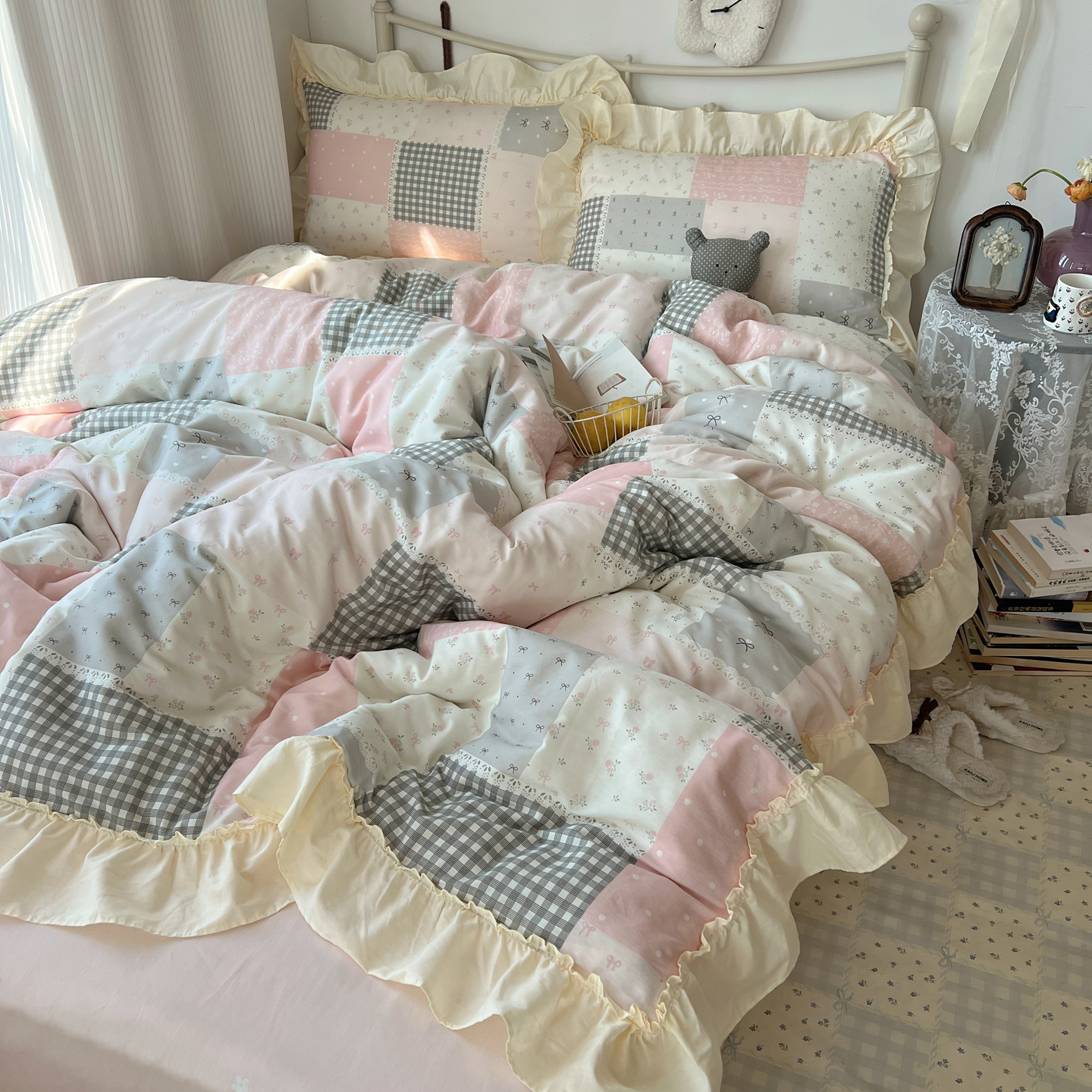 (总)桃喜 2026春夏新品全棉碎花三件套四件套-场景一,粉格拼布碎花(全棉),复古碎布拼花(全棉),馥郁蓝(全棉),赫本(全棉),绿格拼布碎花(全棉),山茶(全棉),香芋紫格碎花(全棉),早春花园(全棉)