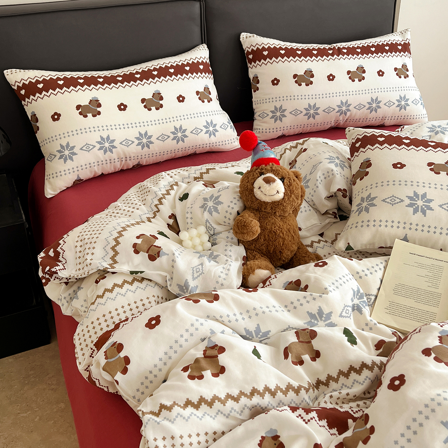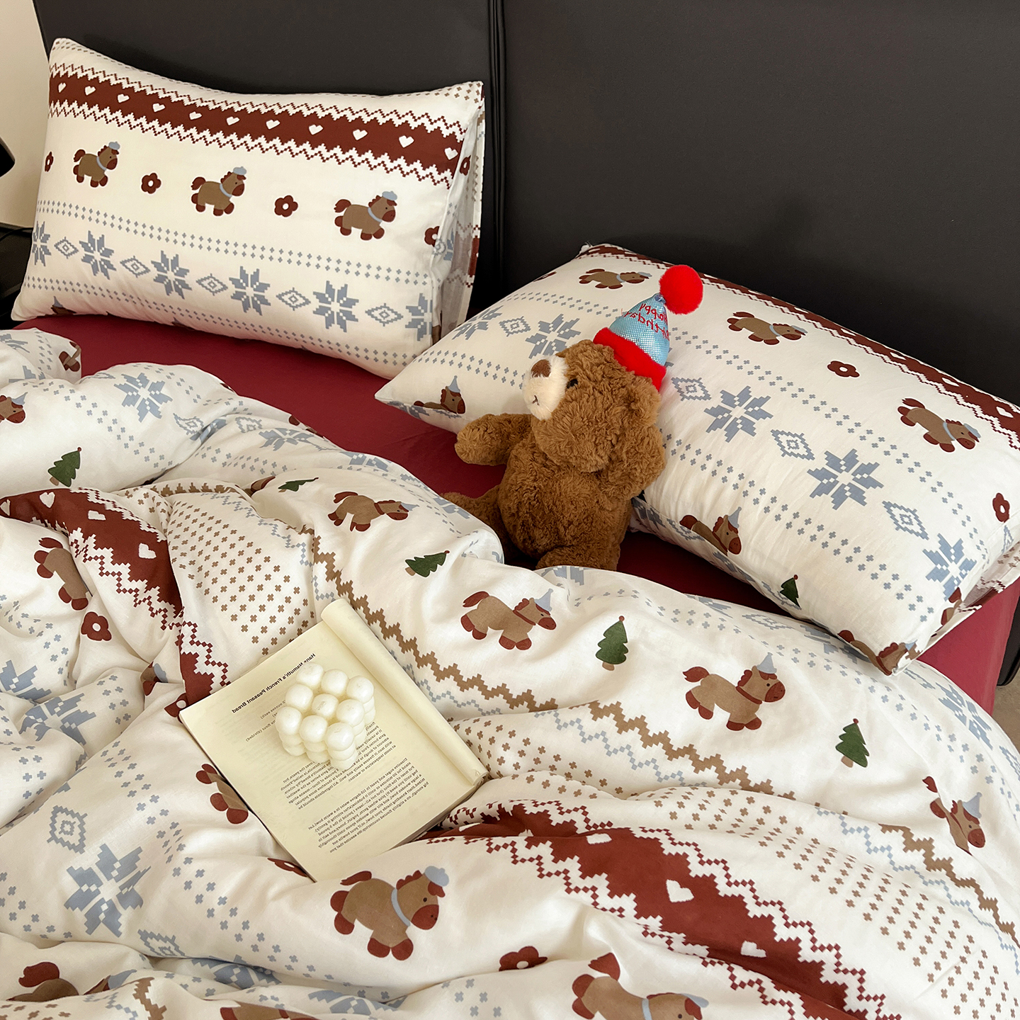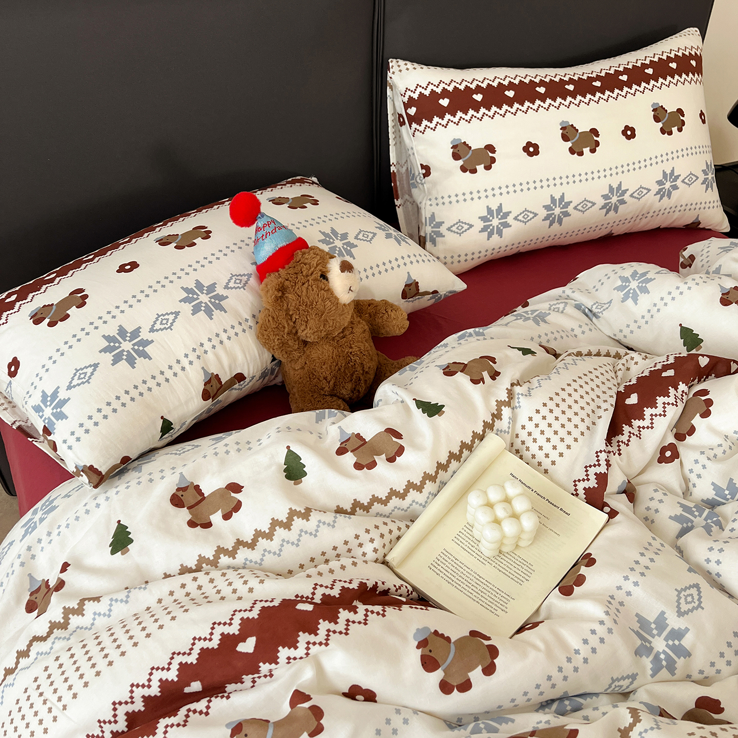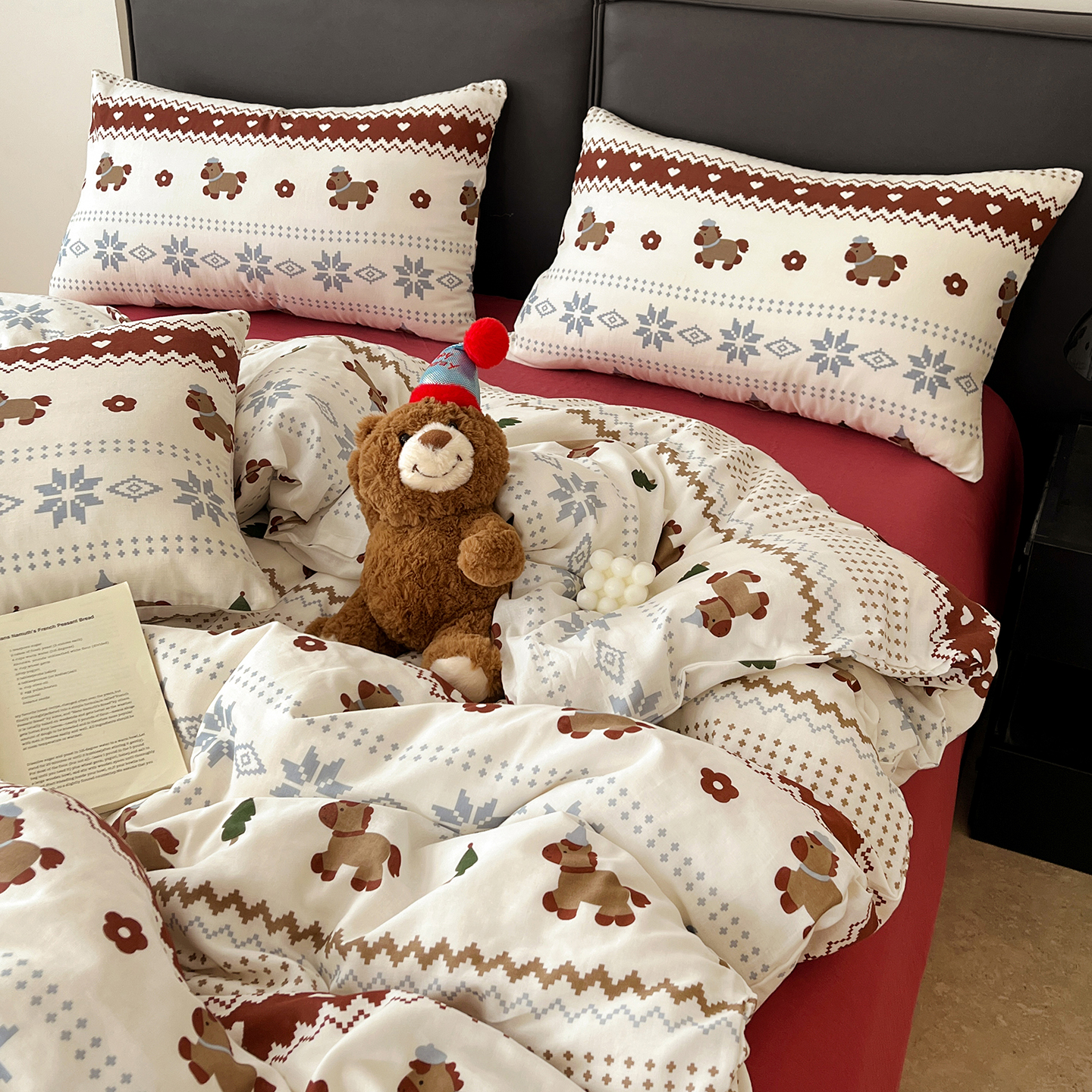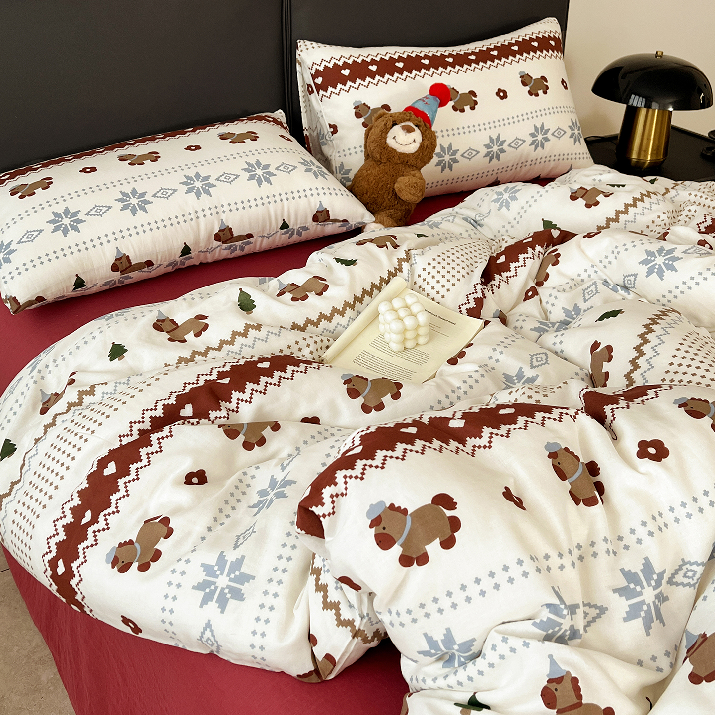 一比一家纺 2026新款全棉双层纱四件套费尔岛小马