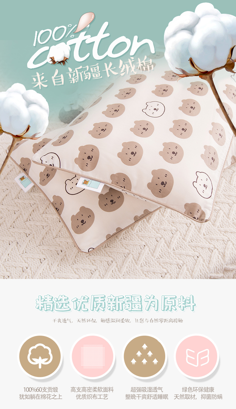 (总)良佐生活 2026年新款铂金全棉压线枕套,甜心熊,布布,调皮象,福宝,乐兔粉,乐兔蓝,太空探险,挖机小分队
