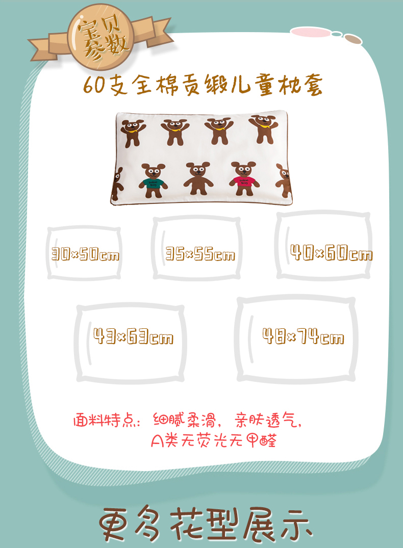 (总)良佐生活 2023新款A类60支全棉贡缎乳胶枕枕套儿童橡胶枕头套高低,口袋熊,恐龙宝宝,开心熊 粉,冰淇淋,恐龙乐园,花仙兔,贝塔 粉,挖掘车