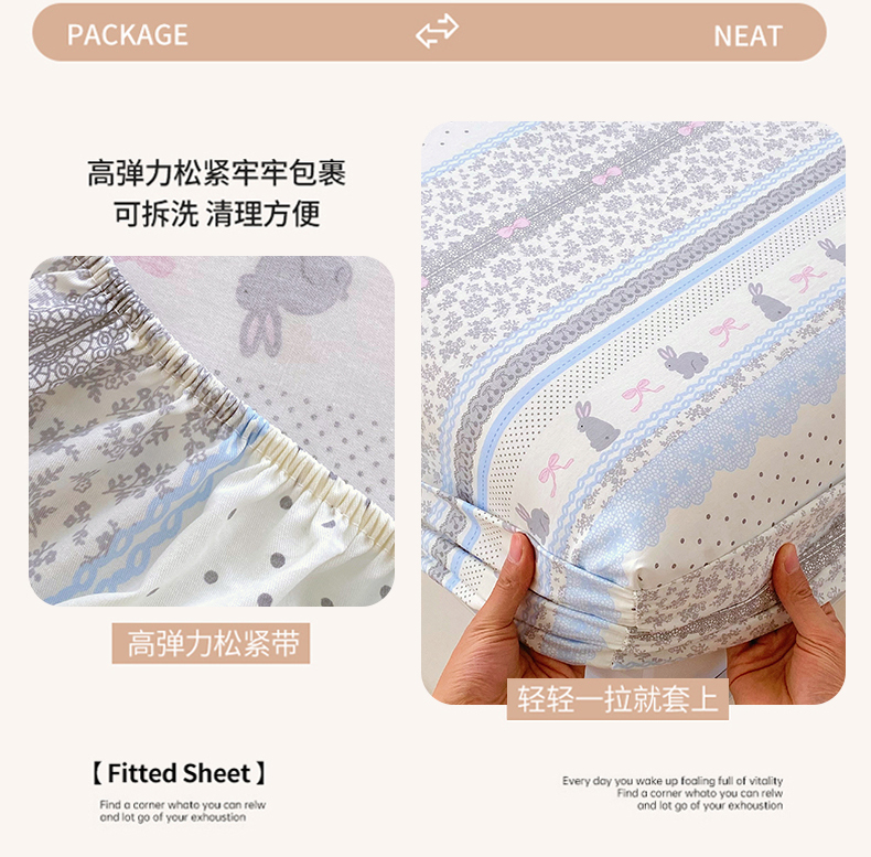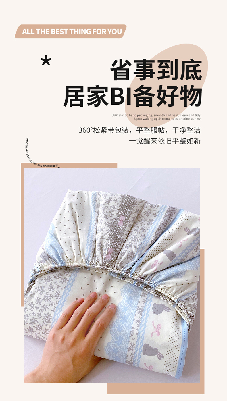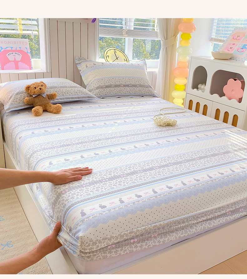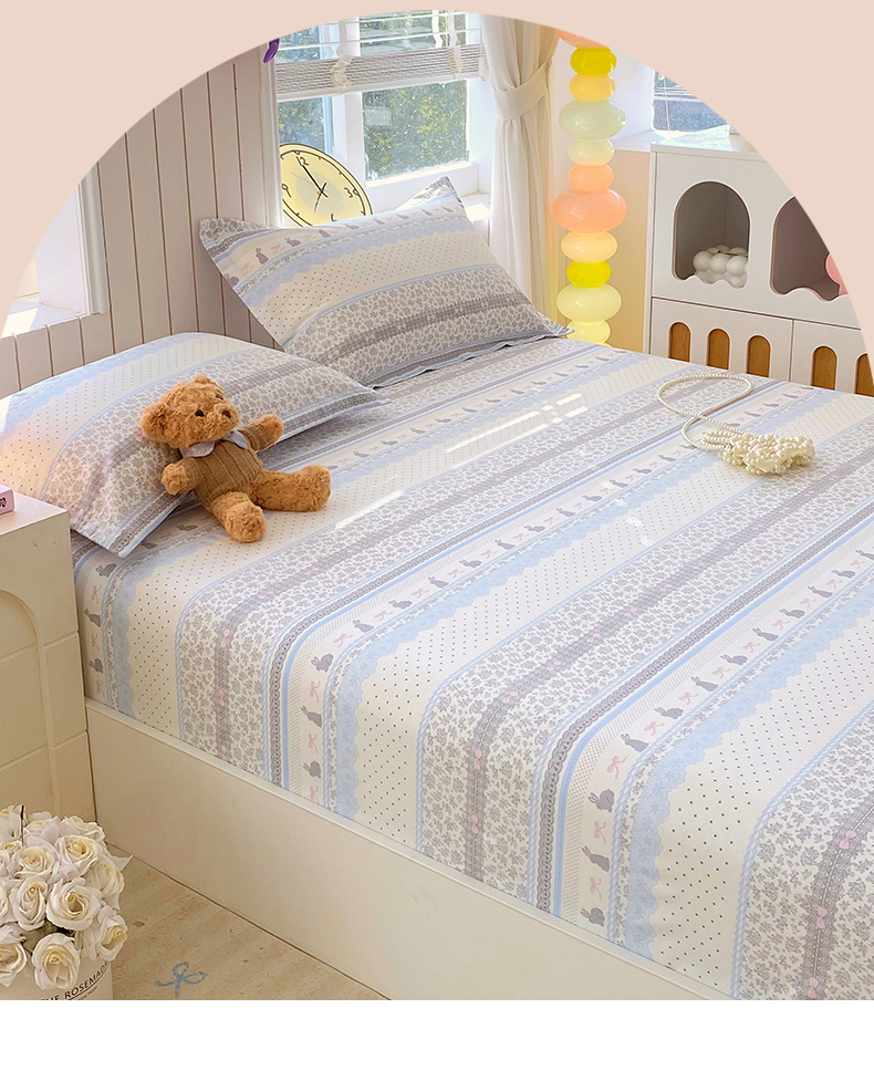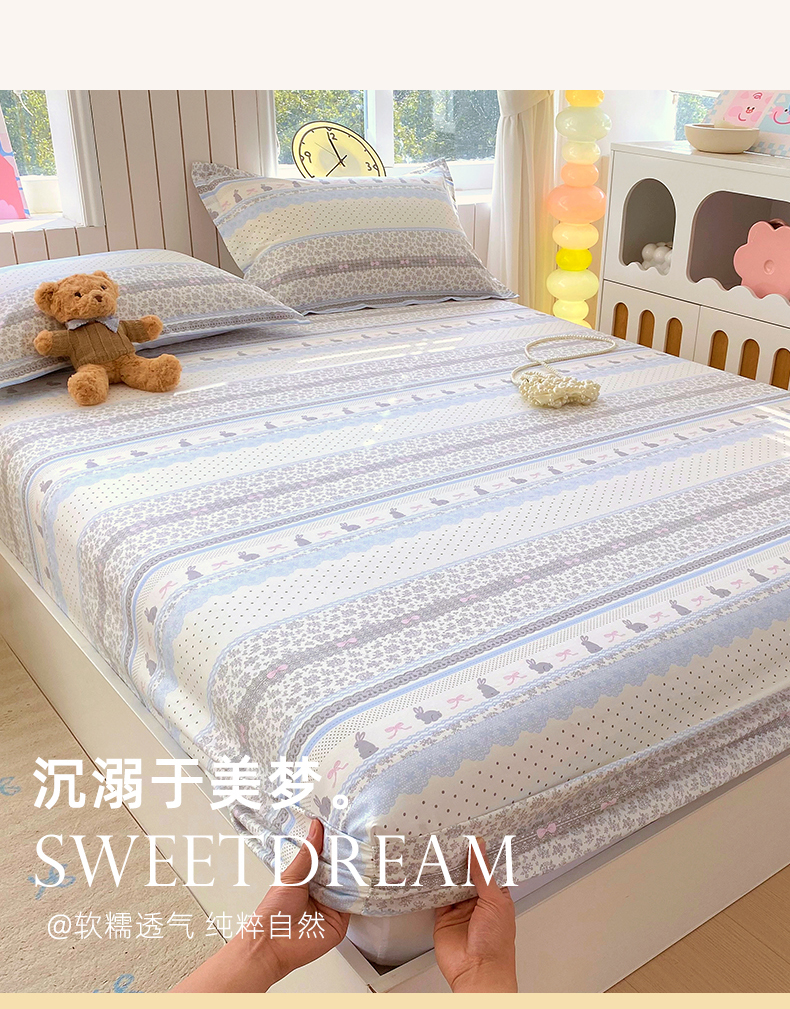 商品名称:金丝兔 2026新款纯棉印花单品床笠系列 海盐兔
