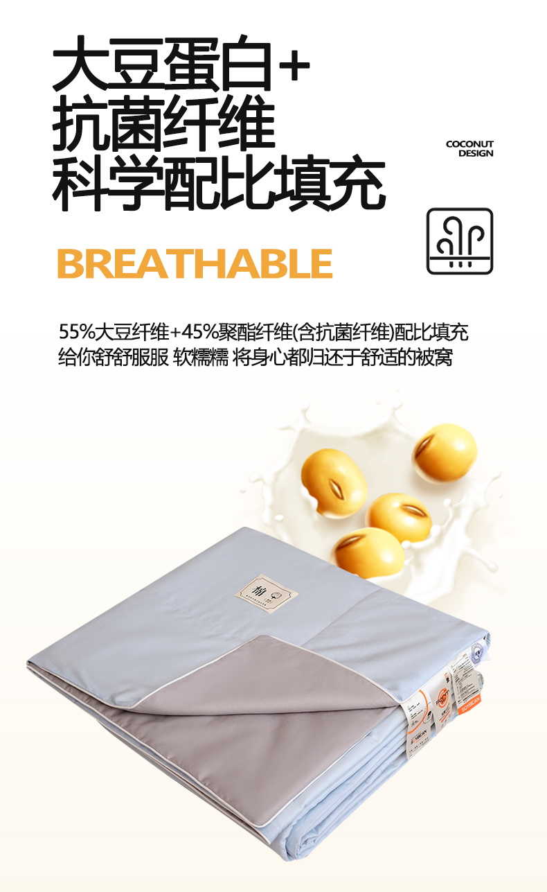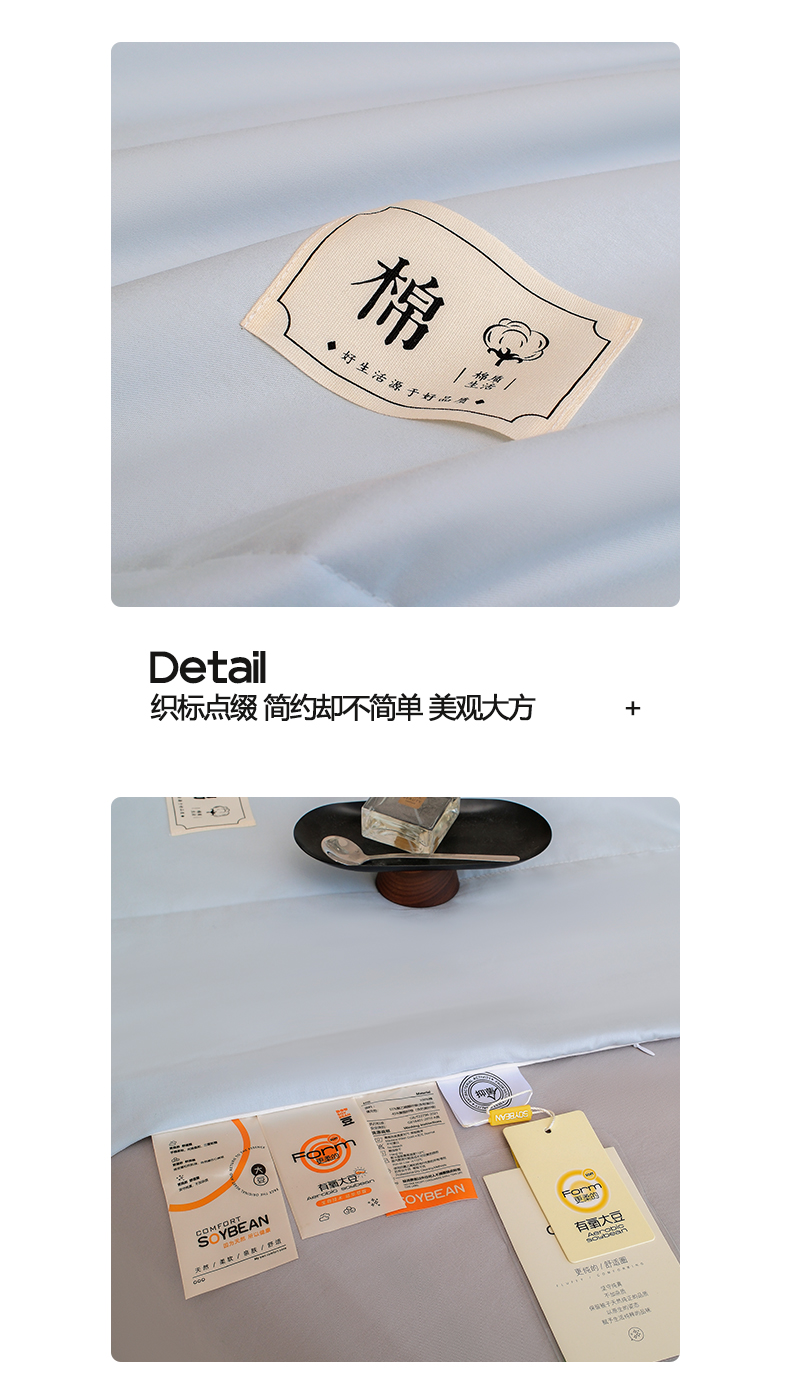 • 填充纤维种类: 大豆蛋白改性聚酯纤维