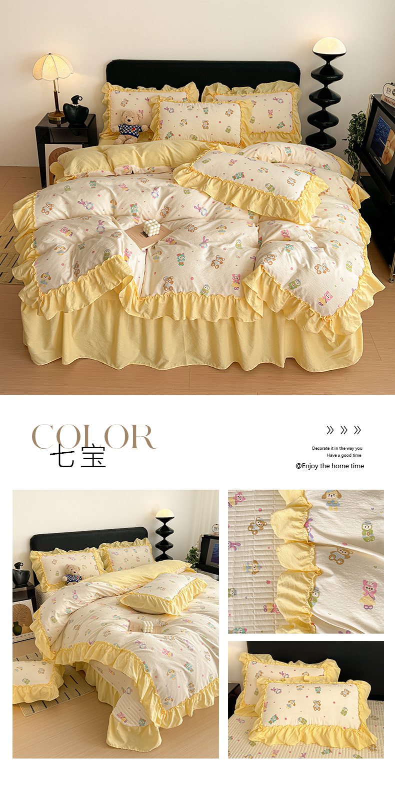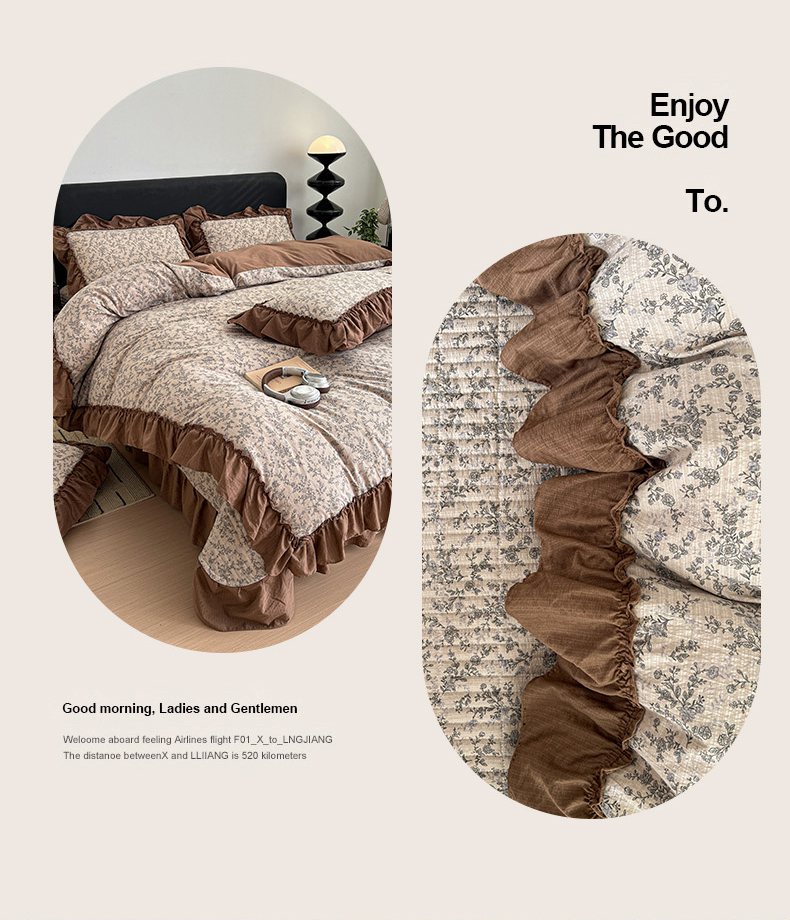 当前位置: 91家纺网 > 商品网购 > 床品套件 > 四件套 > 双层纱四件套 > 富米莱(原臻工厂) 2026新款敲可爱奶呼呼云感双层纱韩国大布袋韩版大花边床盖床裙四件套-超级治愈 见花则喜