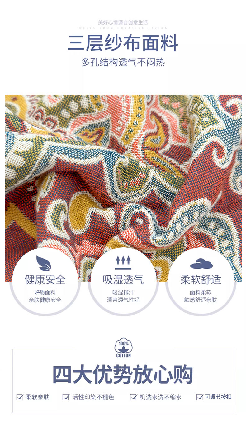 商品名称:(总)朴尔家纺-毛巾被 2026新款半包可调节暗扣魔术全棉纯棉三层纱布枕巾