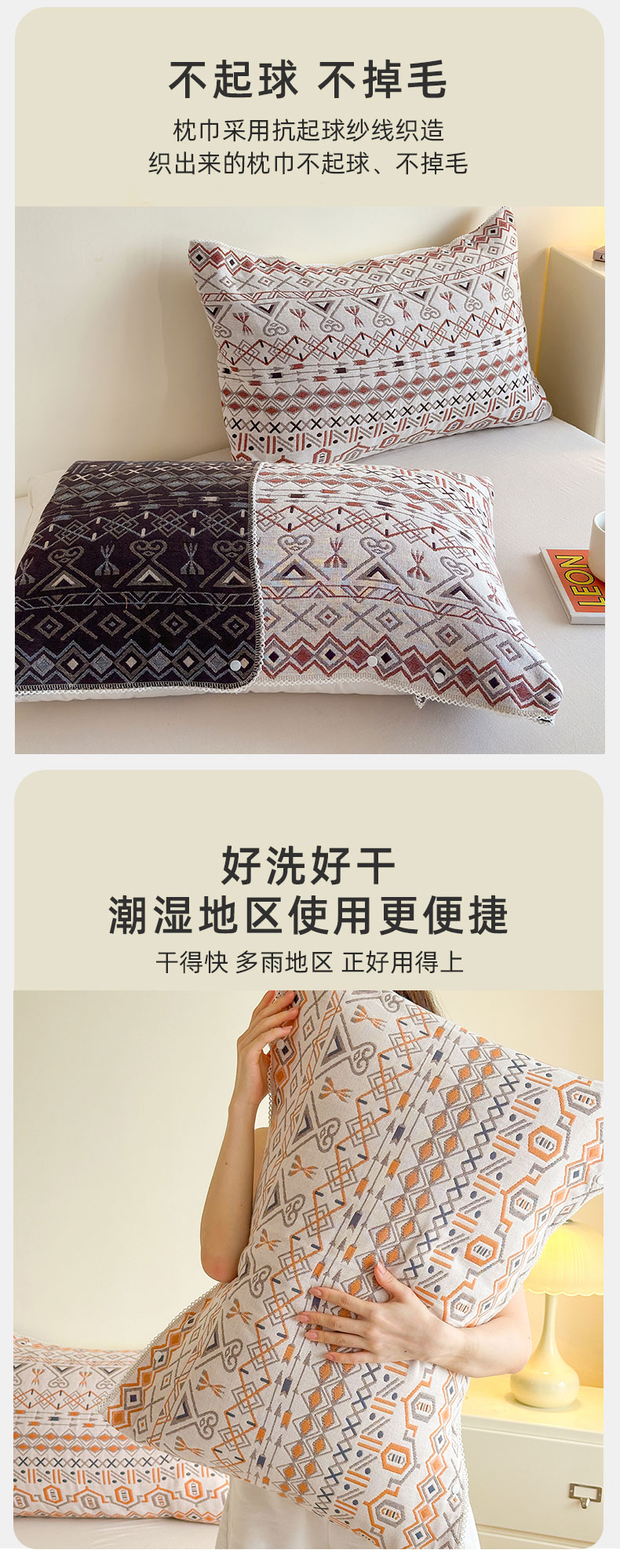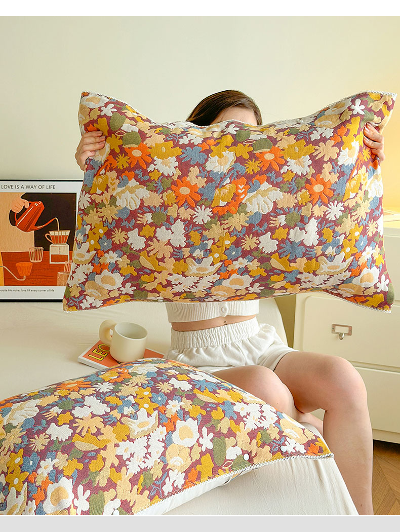 • 91家纺网 家纺一手货源 找家纺 朴尔家纺-毛巾被 2026新款半包可调节暗扣魔术全棉纯棉三层纱布枕巾 朴素树叶 53x110cm枕巾一对
