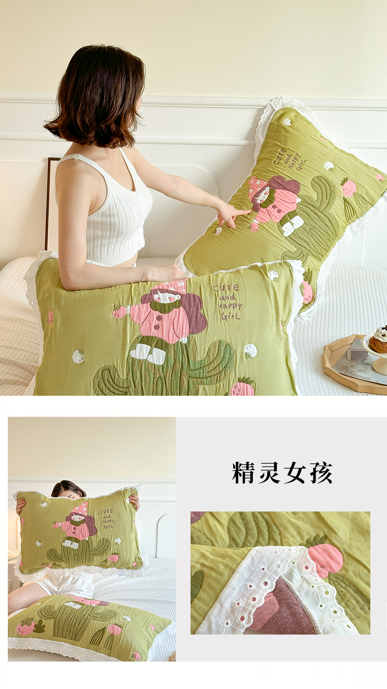 商品名称:(总)朴尔家纺-毛巾被 2026新款韩版花边卡通水洗起皱纯棉六层纱布枕巾