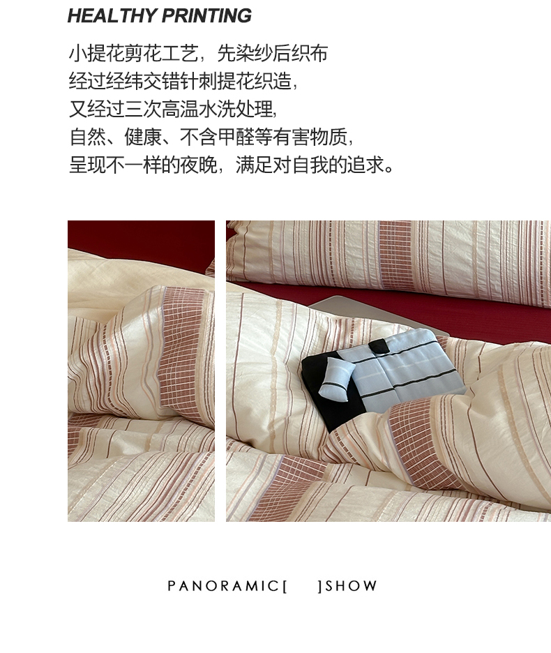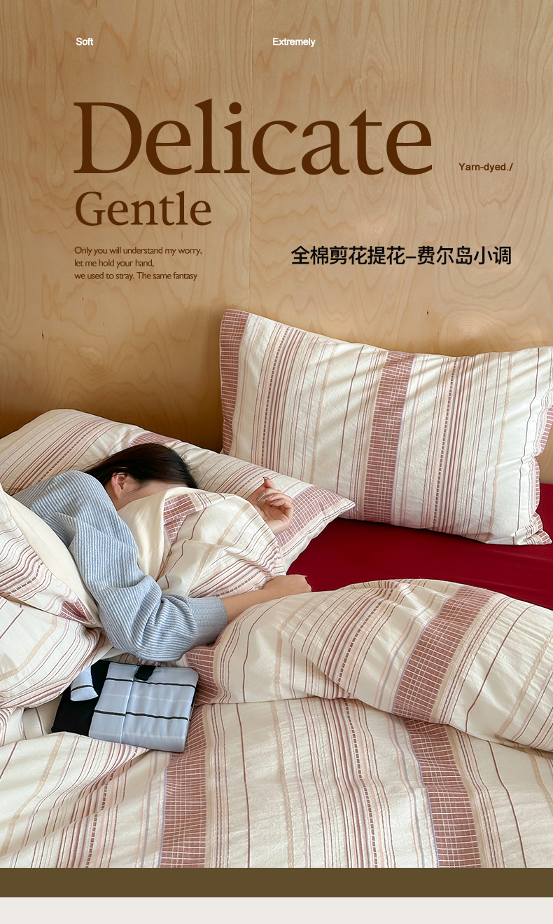 当前位置: 91家纺网 > 商品网购 > 床品套件 > 四件套 > 全棉普通四件套 > (总)例外 2026新款全棉色织提花四件套--费尔岛小调(控价 小号卷后不得低于285 标准310 加大325)