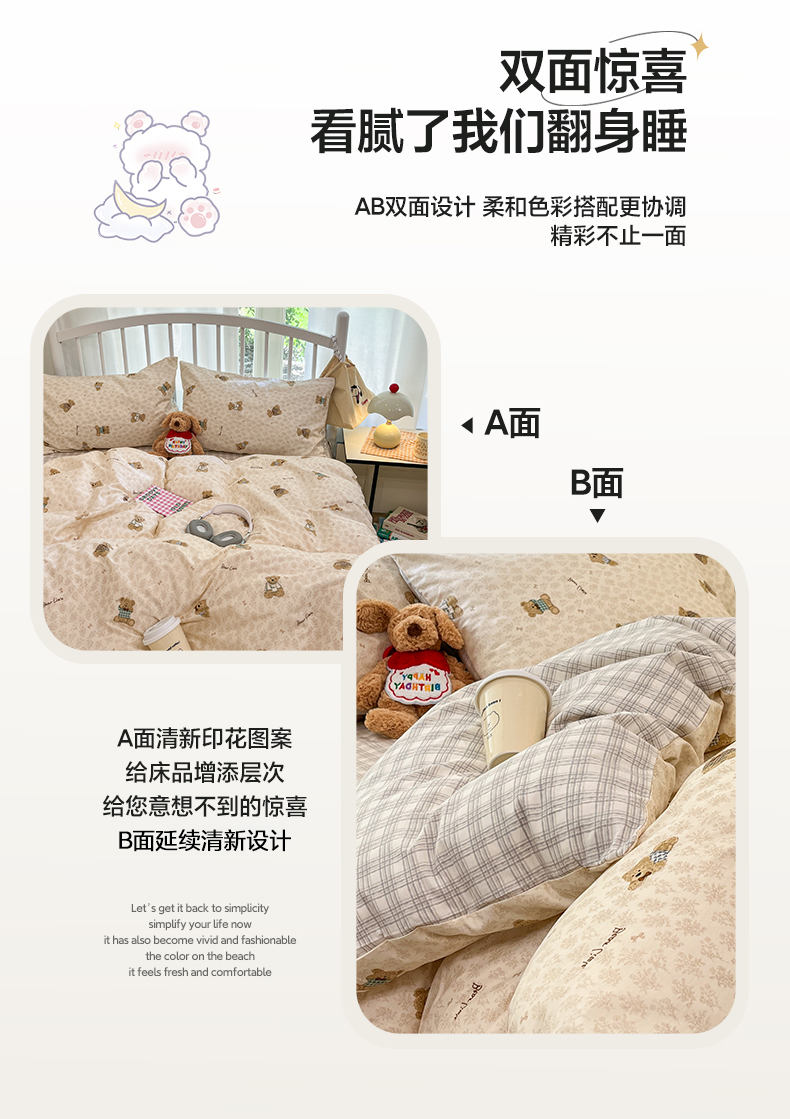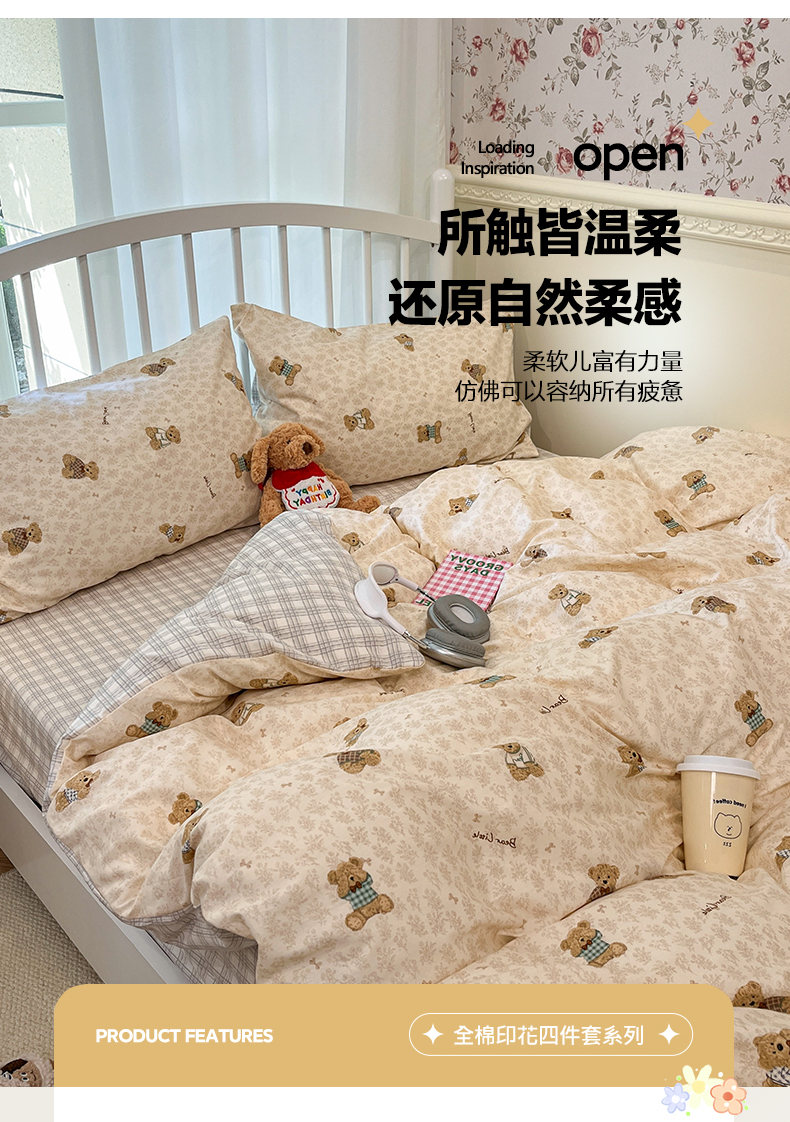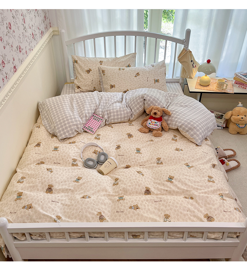 盛馨家纺 2026年开学季春夏新品小清新全棉学生三件套四件套床笠四件套跑量款 布偶熊