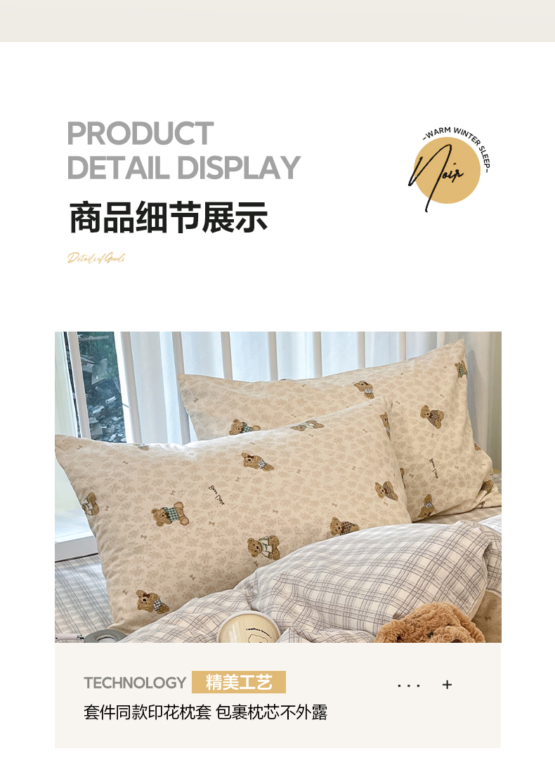 商品名称:盛馨家纺 2026年开学季春夏新品小清新全棉学生三件套四件套床笠四件套跑量款 布偶熊