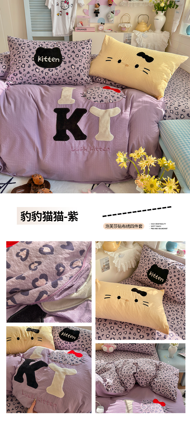 当前位置: 91家纺网 > 商品网购 > 床品套件 > 四件套 > 其它四件套 > 初念 2026春夏新款泡芙莎贴布绣豹豹猫猫四件套 豹豹猫猫--蓝