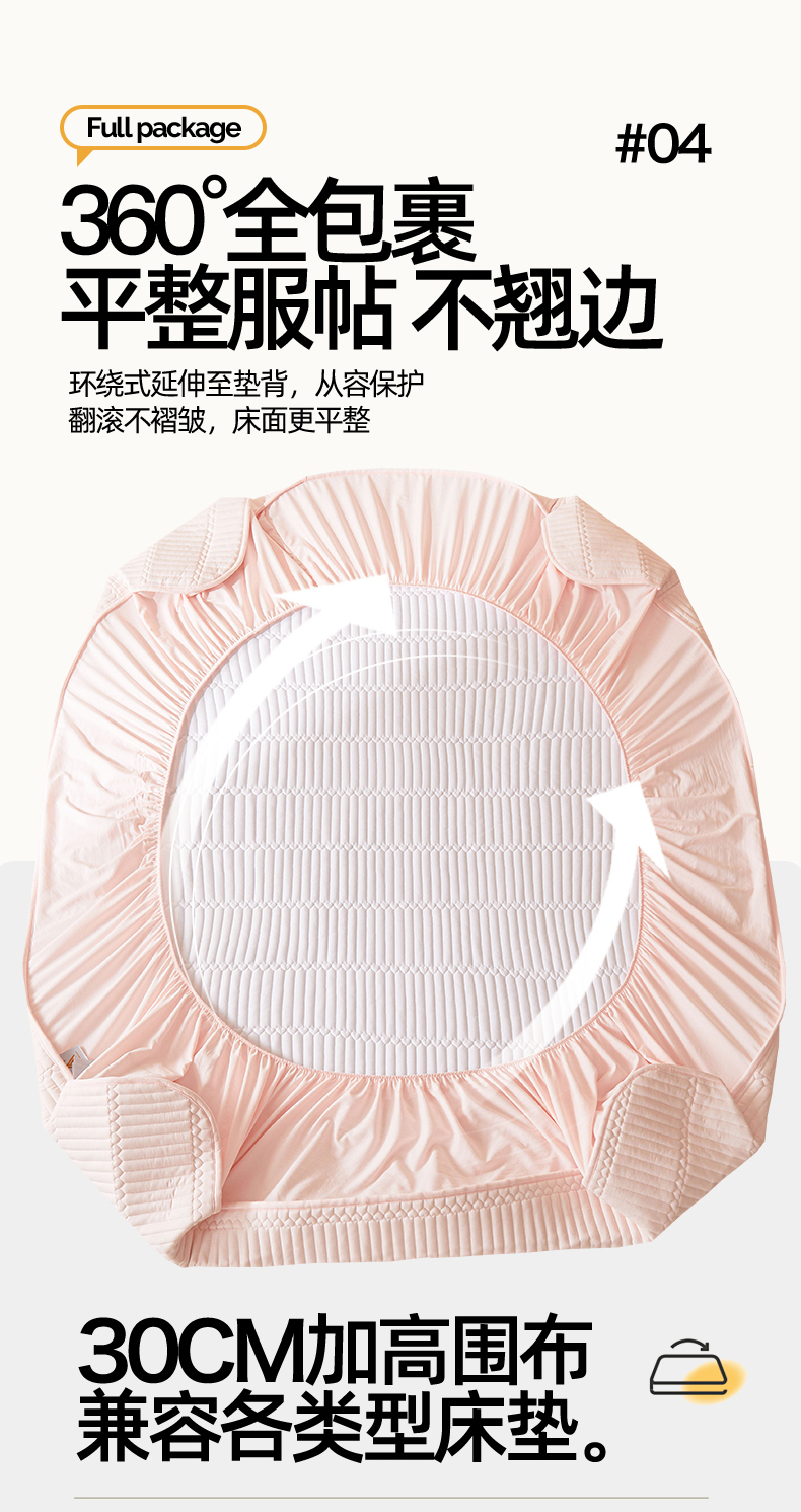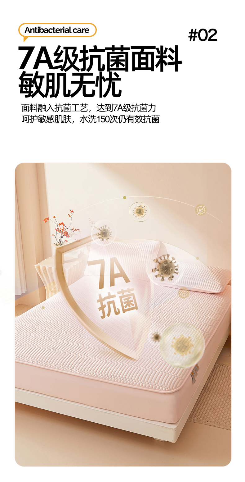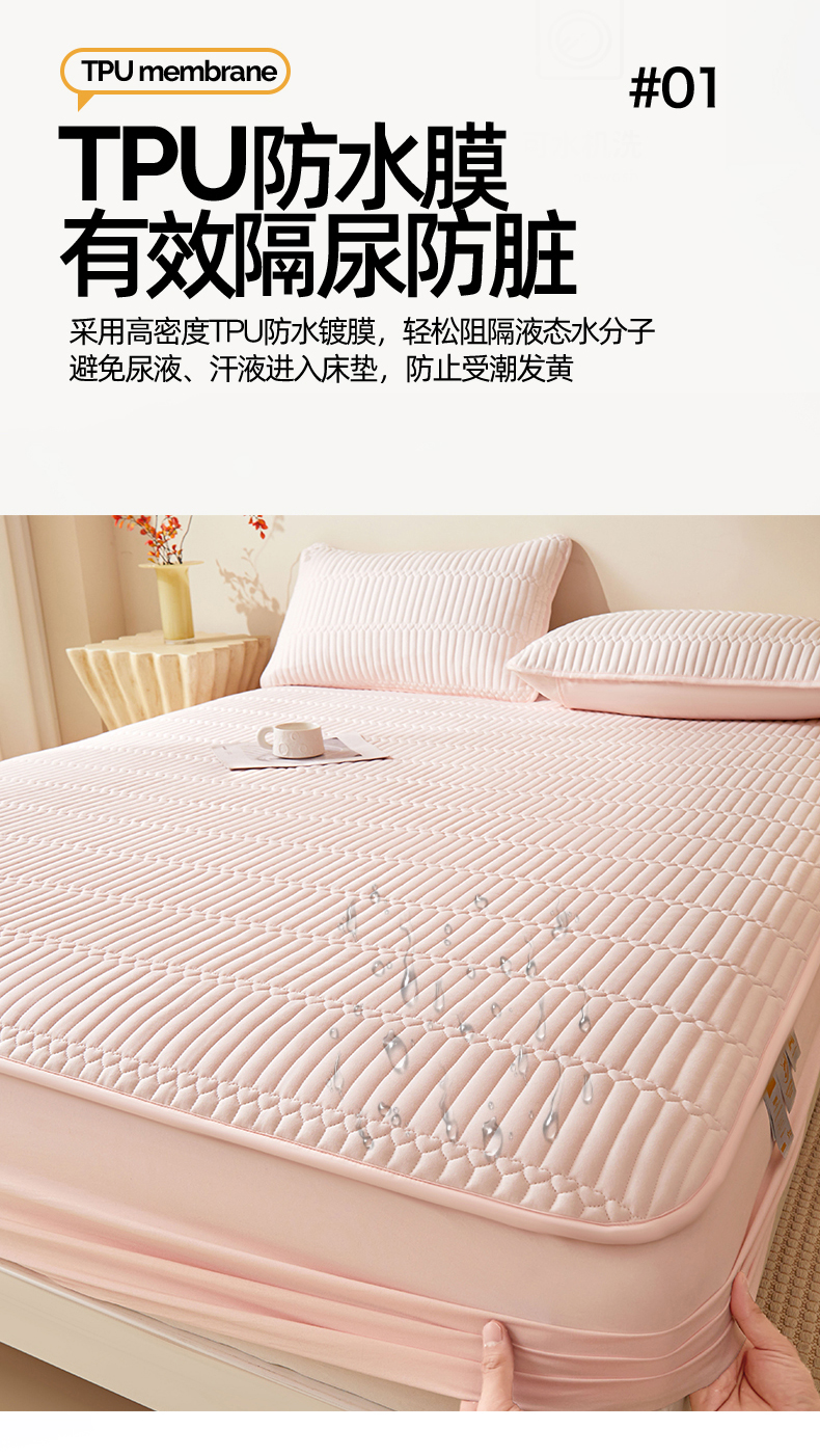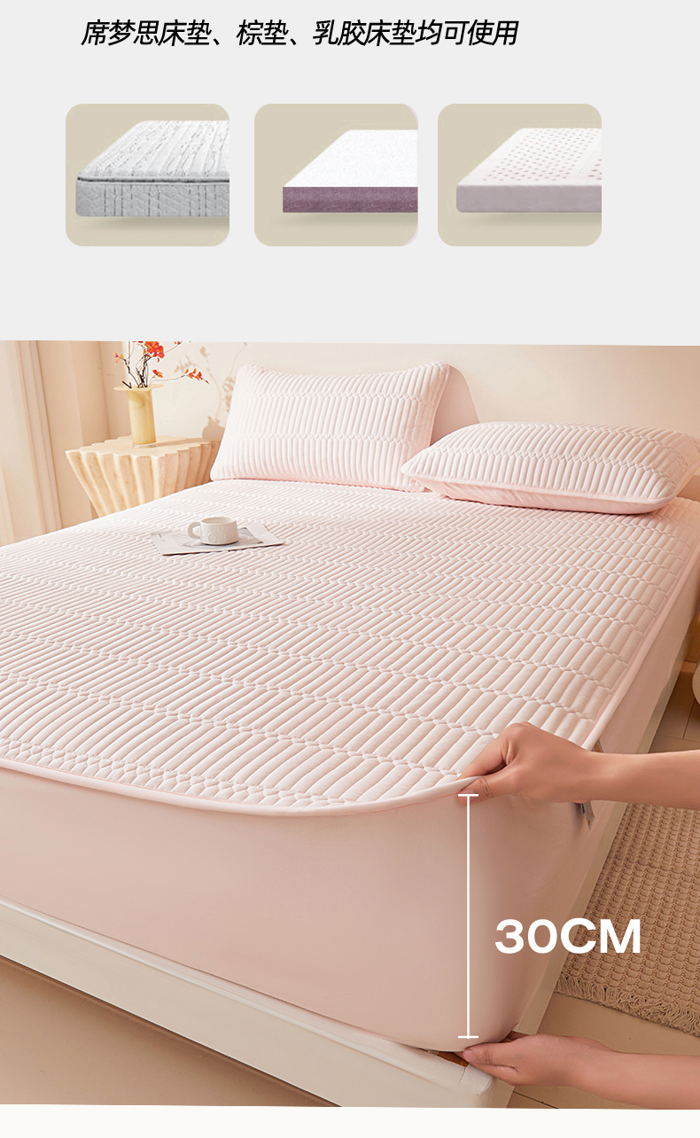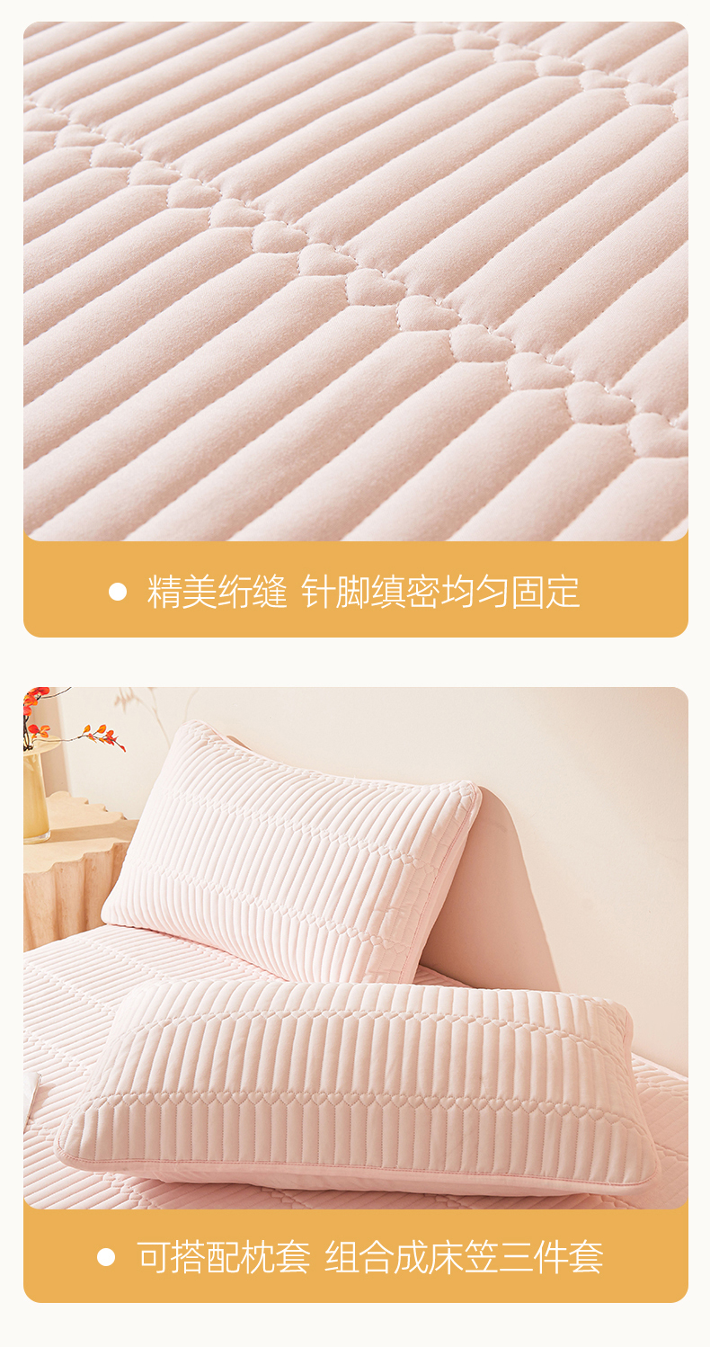 • 91家纺网 家纺一手货源 找家纺 女子家纺 2026春夏新款简爱A类夹棉防水床笠三件套水洗棉7A抗菌磨毛床单保护套 简爱-密合粉