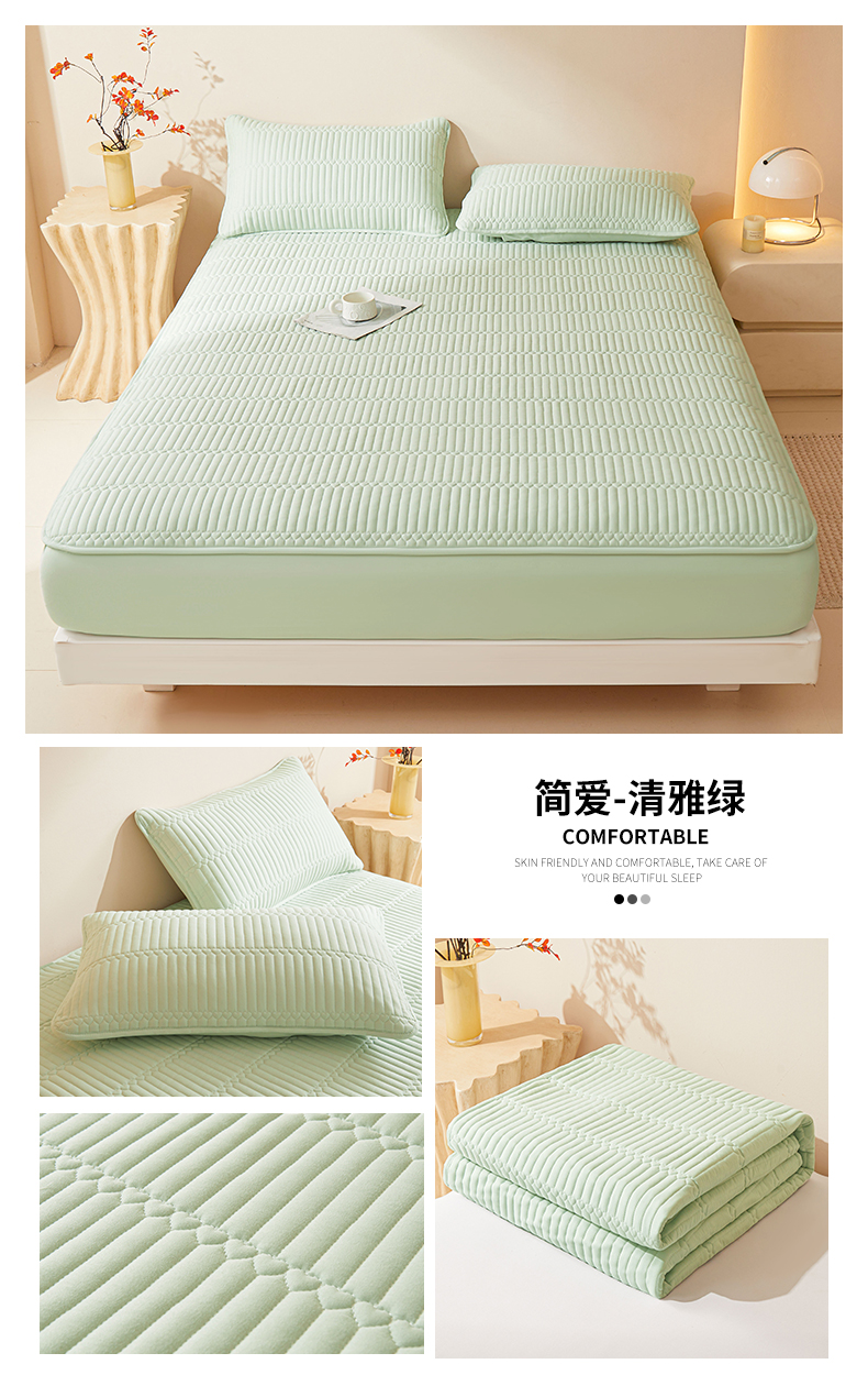 • 91家纺网 家纺一手货源 找家纺 (总)女子家纺 2026春夏新款简爱A类夹棉防水床笠三件套水洗棉7A抗菌磨毛床单保护套,简爱-月光白,简爱-黛蓝,简爱-淡水蓝,简爱-密合粉,简爱-暮云灰,简爱-奶咖,简爱-清雅绿,简爱-深空灰