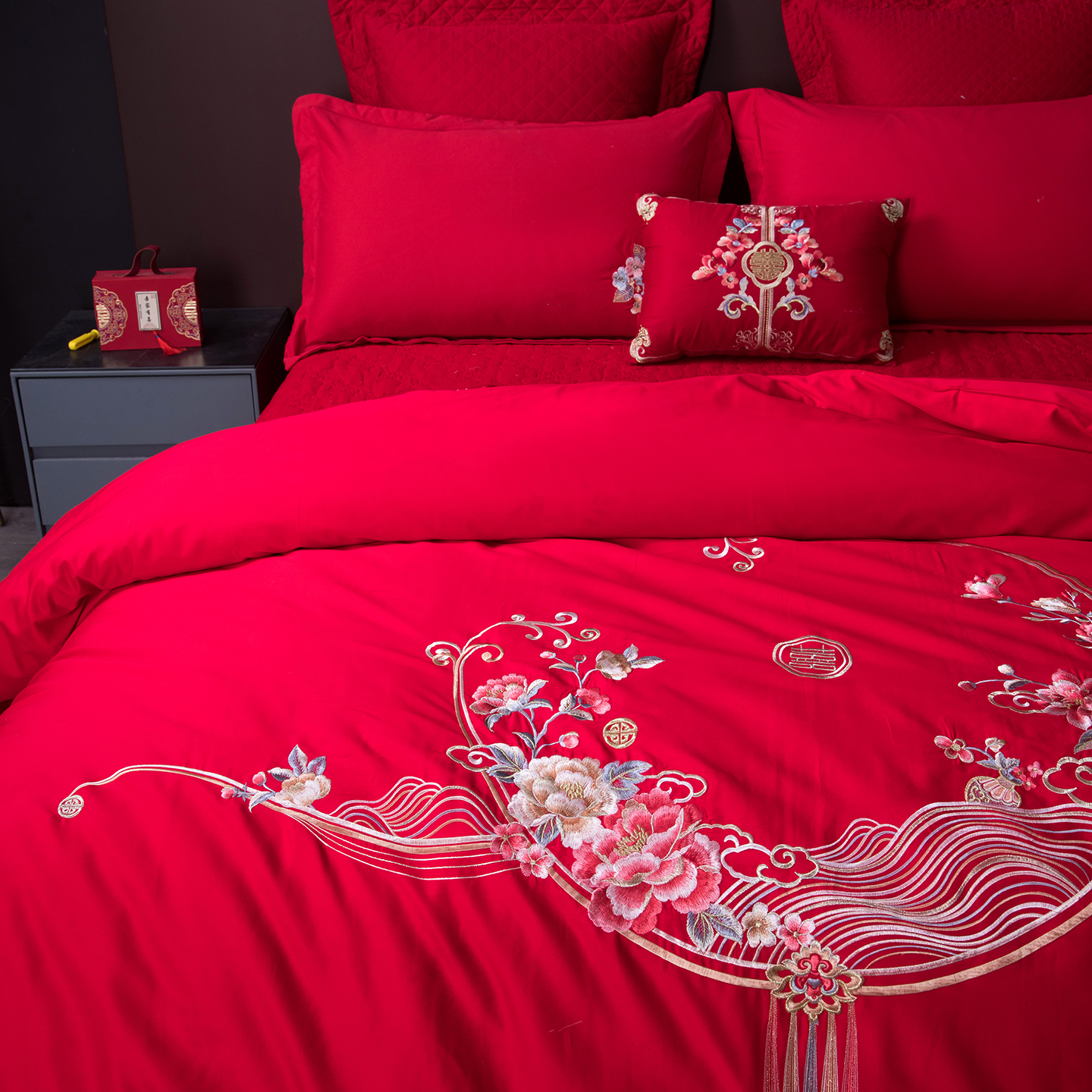 商品名称:鑫田家纺 2026新款60支全棉婚庆蚕丝被100%柞蚕丝夏被春秋被冬被子母被礼品被桑蚕丝被 喜结连理