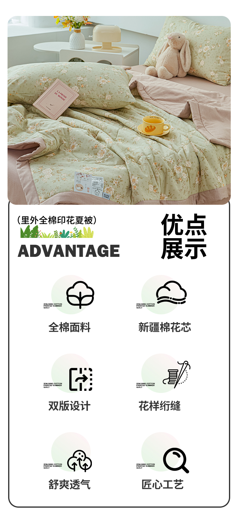 • 适用季节: 空调被/夏凉被