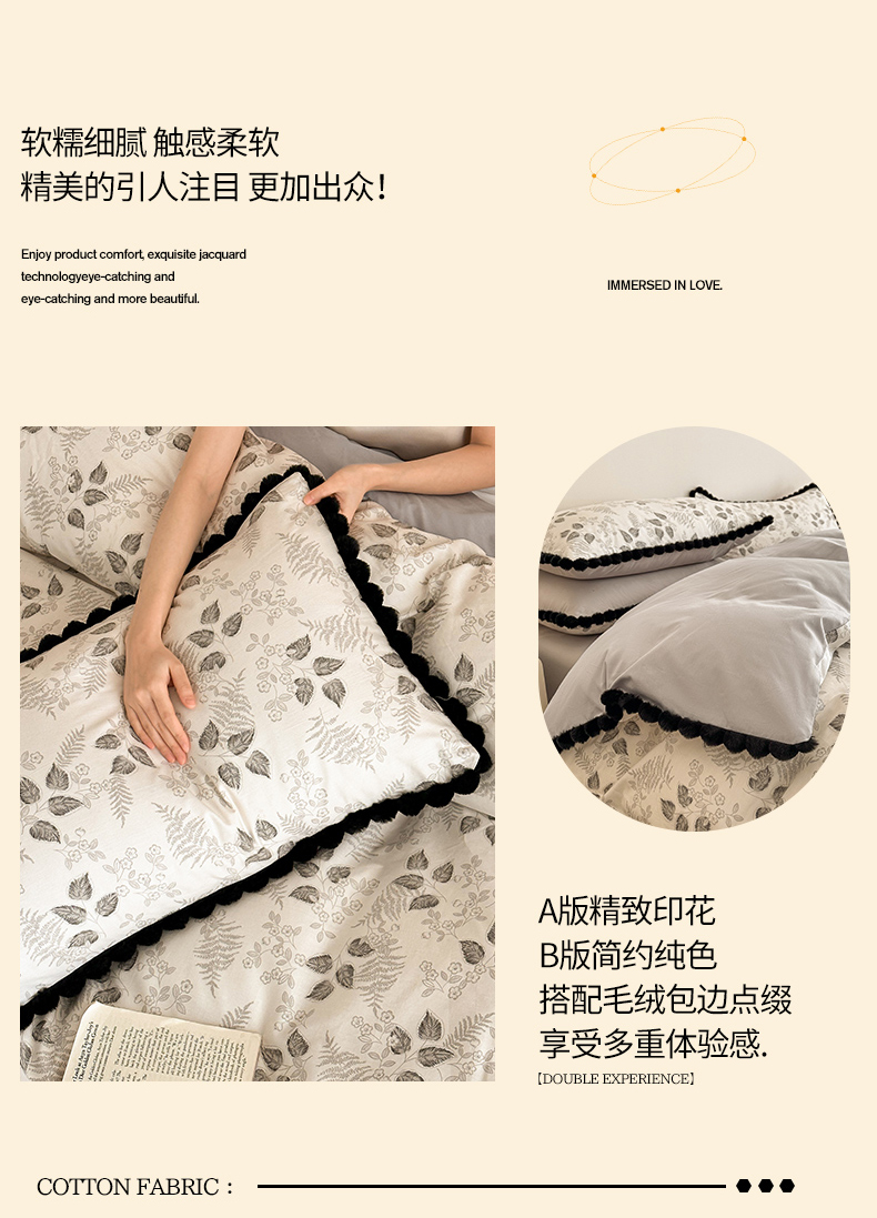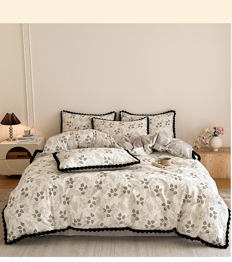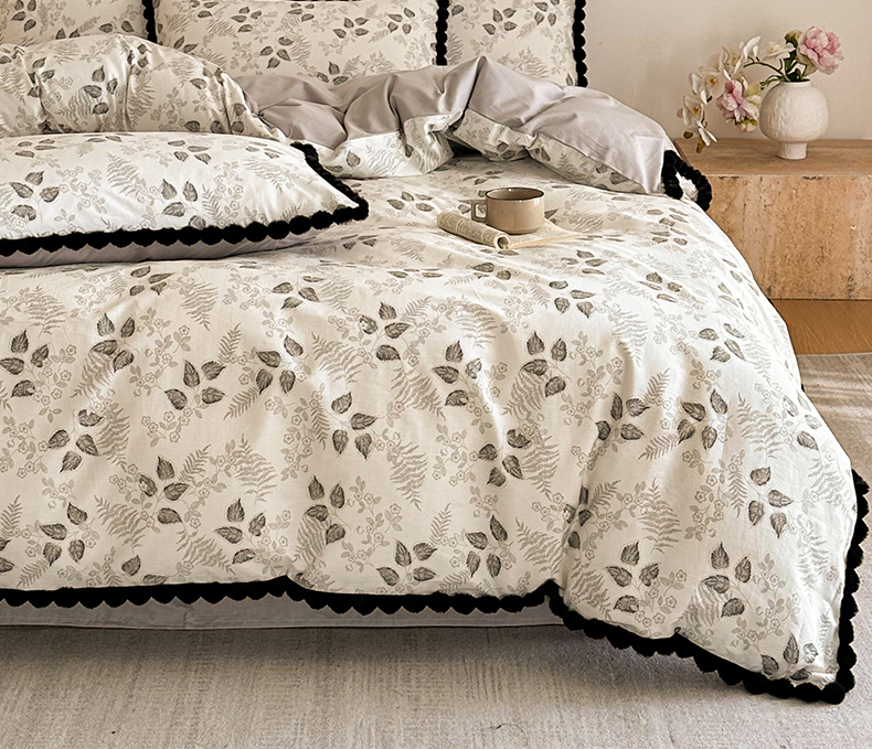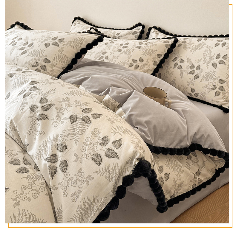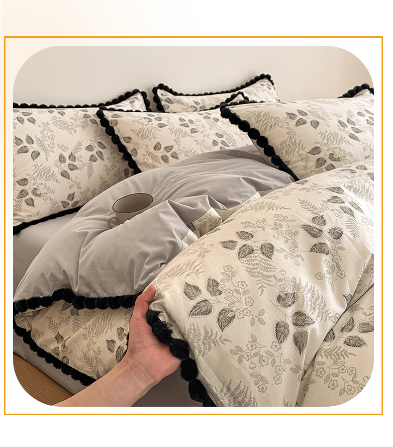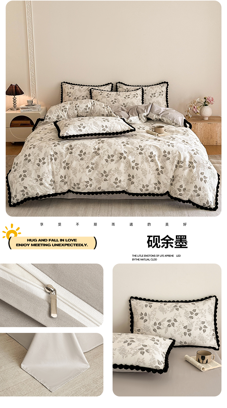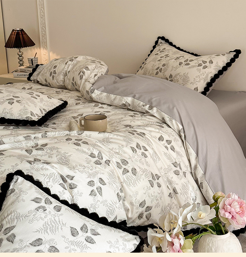商品名称:羚羊语家纺 2026新款全棉毛球款四件套40支纯棉轻奢13372小清新喷气印花四件套被套床单床笠三件套 砚余墨