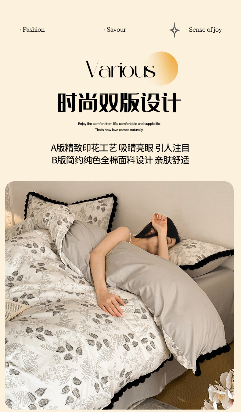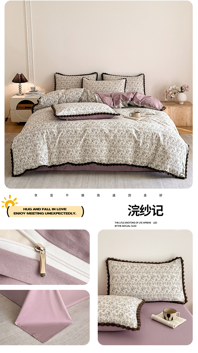 (总)羚羊语家纺 2026新款全棉法式赫本风花边四件套40支纯棉轻法式13372小清新喷气印花四件套被套床单床笠三件套,甜憩间,采薇南山,椿亭序Pro,第七重梦,绀雾纱,青禾枕梦,柔蓝一水,时光花礼,组合