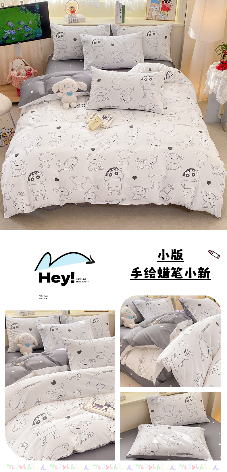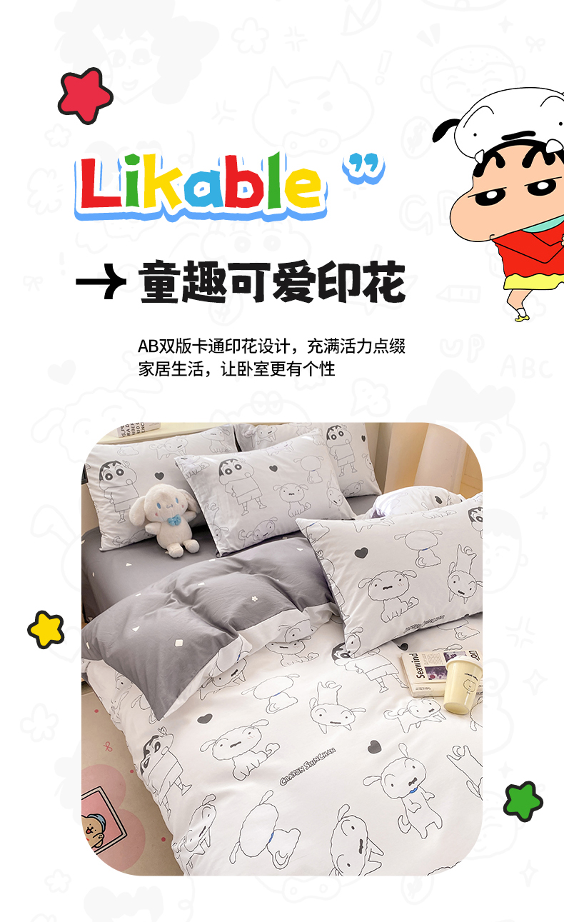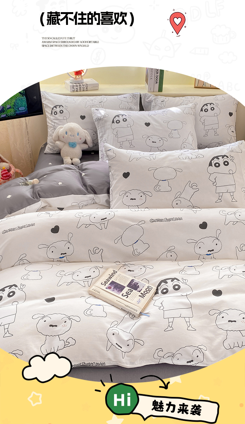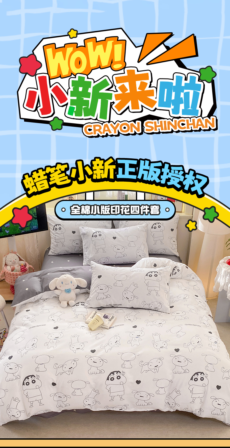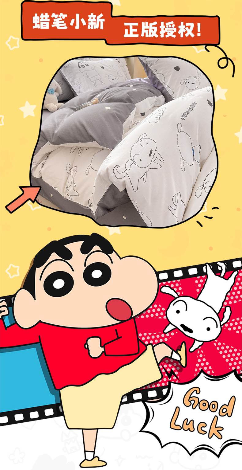 当前位置: 91家纺网 > 商品网购 > 床品套件 > 四件套 > 全棉普通四件套 > 博雅 2026新款蜡笔小新纯棉全棉四件套 小版-手绘蜡笔小新