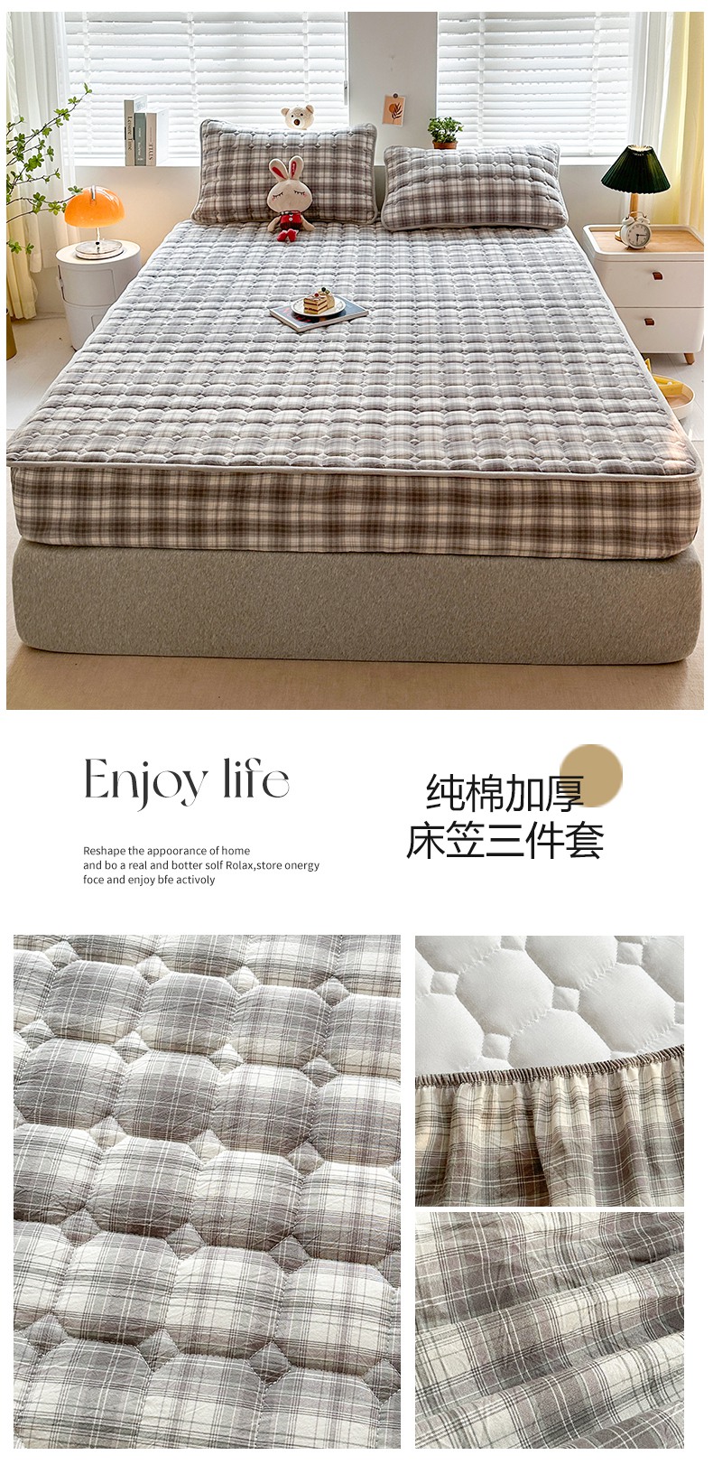 • 91家纺网 家纺一手货源 找家纺 (总)犇牛仓储供应链 2026新款全棉色织水洗棉夹棉床笠床垫【可定制】,纯色素雅-冰山灰,纯色素雅-豆沙粉,纯色素雅-卡其色,纯色素雅-牛仔蓝,纯色素雅-清雅蓝,纯色素雅-月光白