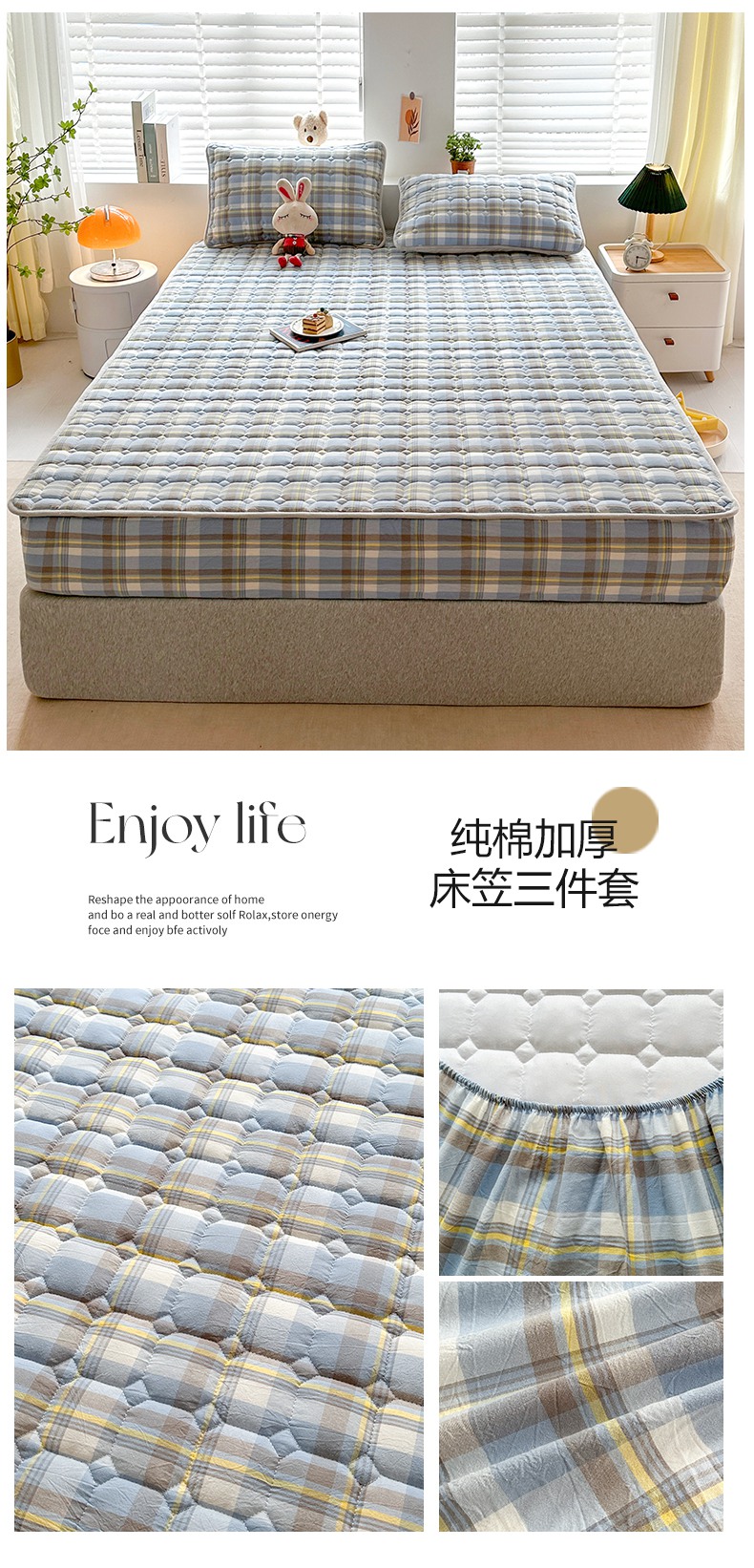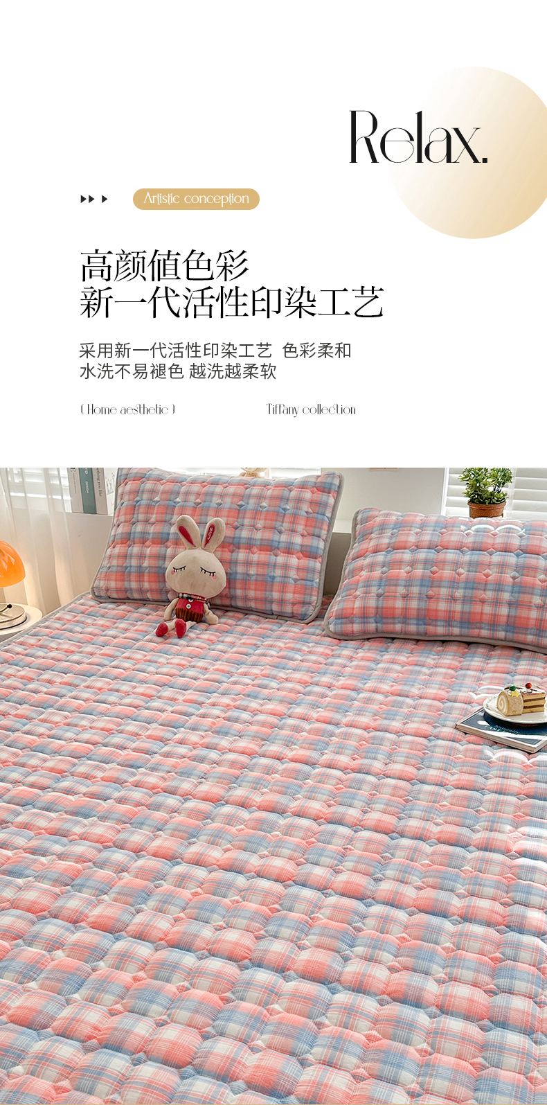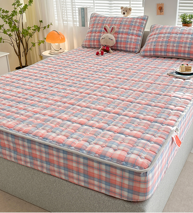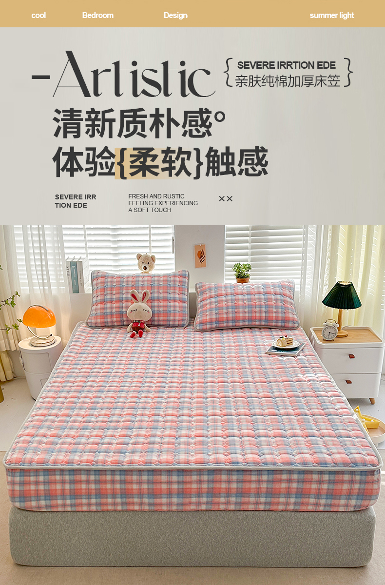 犇牛仓储供应链 2026新款亲肤纯棉加厚床笠 素雅蓝粉格
