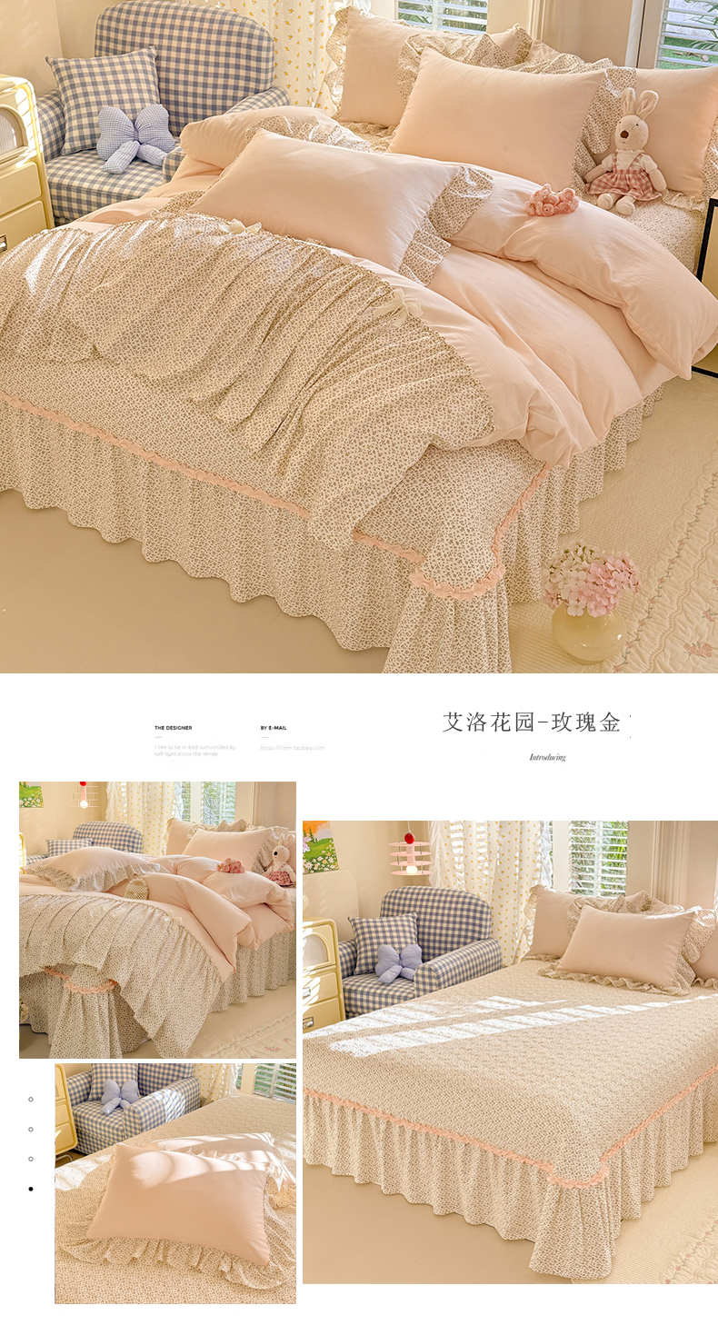 商品名称:漫布云家纺 2026新款春夏超柔云朵棉床盖款四件套-艾洛花园系列 艾洛花园-童话粉