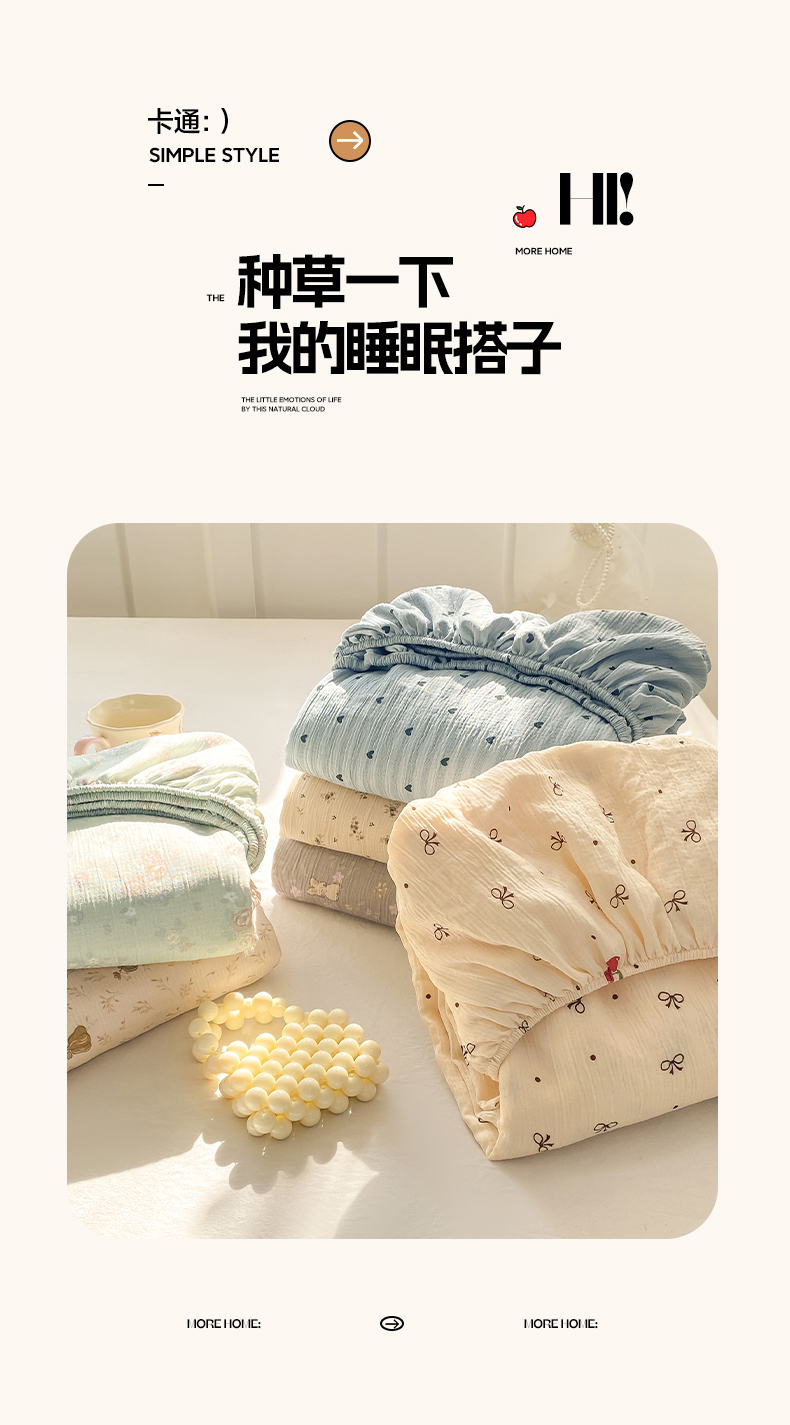 (总)眠势力 2026新款双层纱床笠单件云感皱皱纱床罩三件套床垫保护套,紫雾花汀,缤纷彩结,彩色心情,草莓蝴蝶结,春野织梦,哈喽猫咪,海盐奶猫,花漾草莓,金蝶逐影,萌兔乐园,青樱兔语,向云端,星梦甜心,幸运小马,紫芋南瓜,组合图 仅供参考