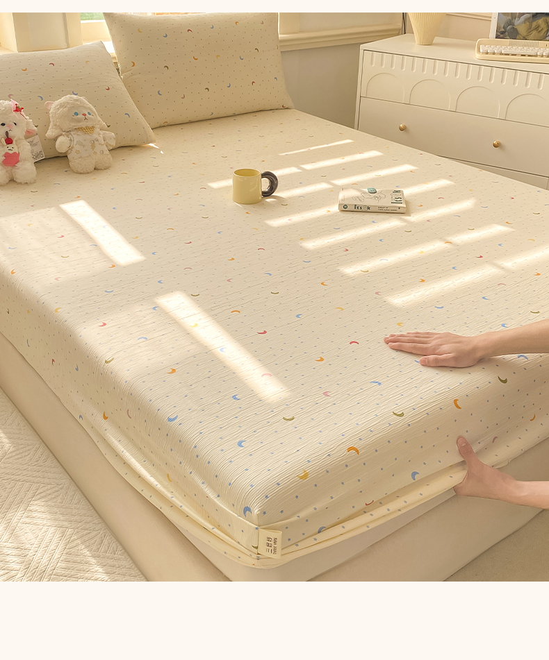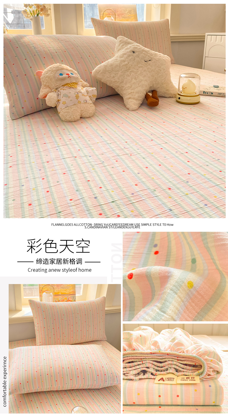 • 91家纺网 家纺一手货源 找家纺 眠势力 2026新款皱皱三层纱床笠三件套云朵床罩单件床垫保护套四季款 点点小花【三层皱皱纱床笠】
