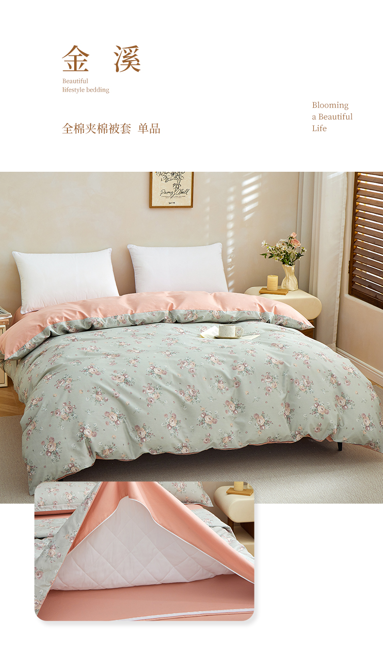 元元家居(元元被业) 2026新款全棉13372套件及单品【印花款】-夹棉被套 知夏