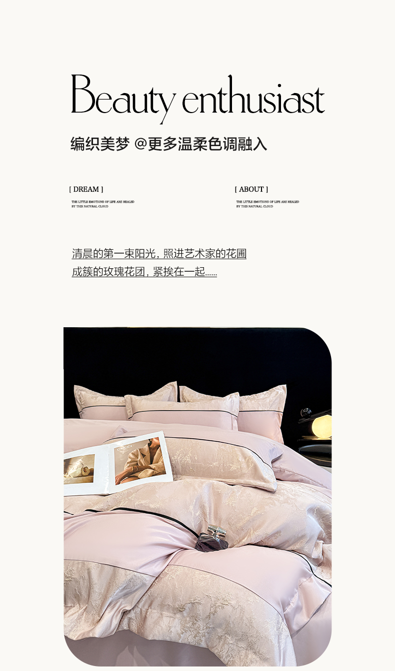 (总)狂想家 2025春夏新款亮丝提花系列四件套,洛莉高级灰,洛莉奶昔白,洛莉轻奢粉,伊莎高级灰,伊莎奶昔白,伊莎轻奢粉
