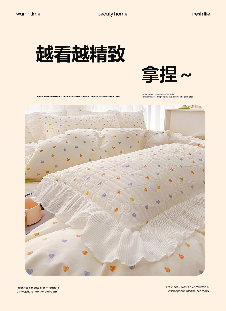 当前位置: 91家纺网 > 商品网购 > 床品套件 > 四件套 > 全棉普通四件套 > 宜凡家纺 2026新款全棉印花雪纺夹棉床盖四件套 多彩凡心