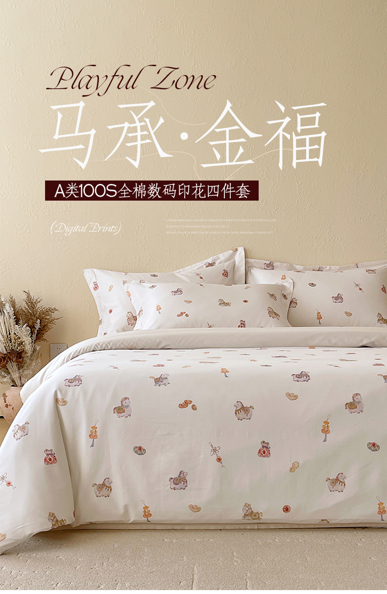 (总)鼎飞家纺 2026新款100S长绒棉数码印花四件套-马承金福