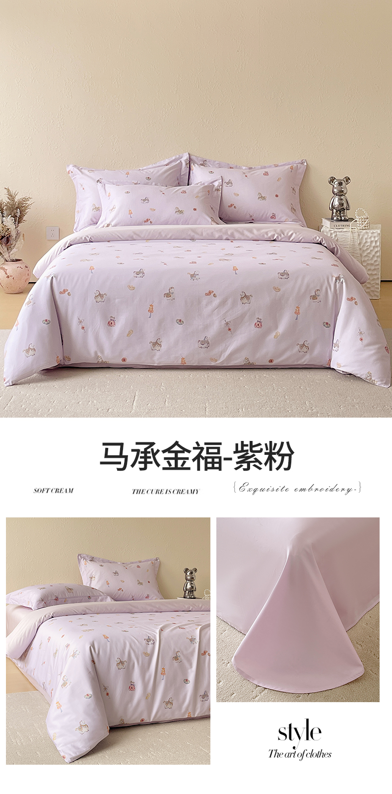 (总)鼎飞家纺 2026新款100S长绒棉数码印花四件套-春日序,春日序-粉,春日序-紫