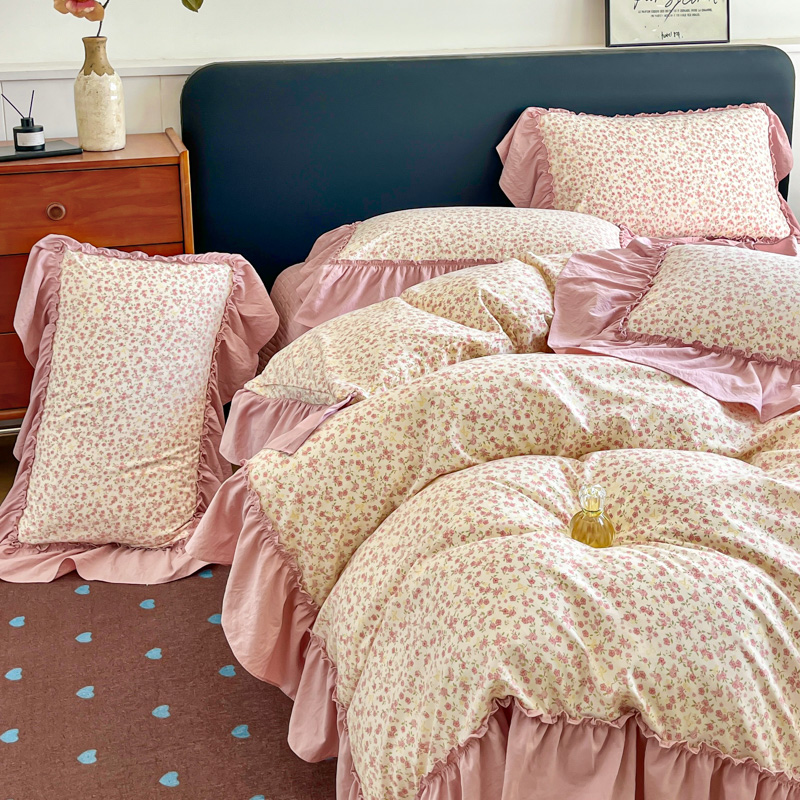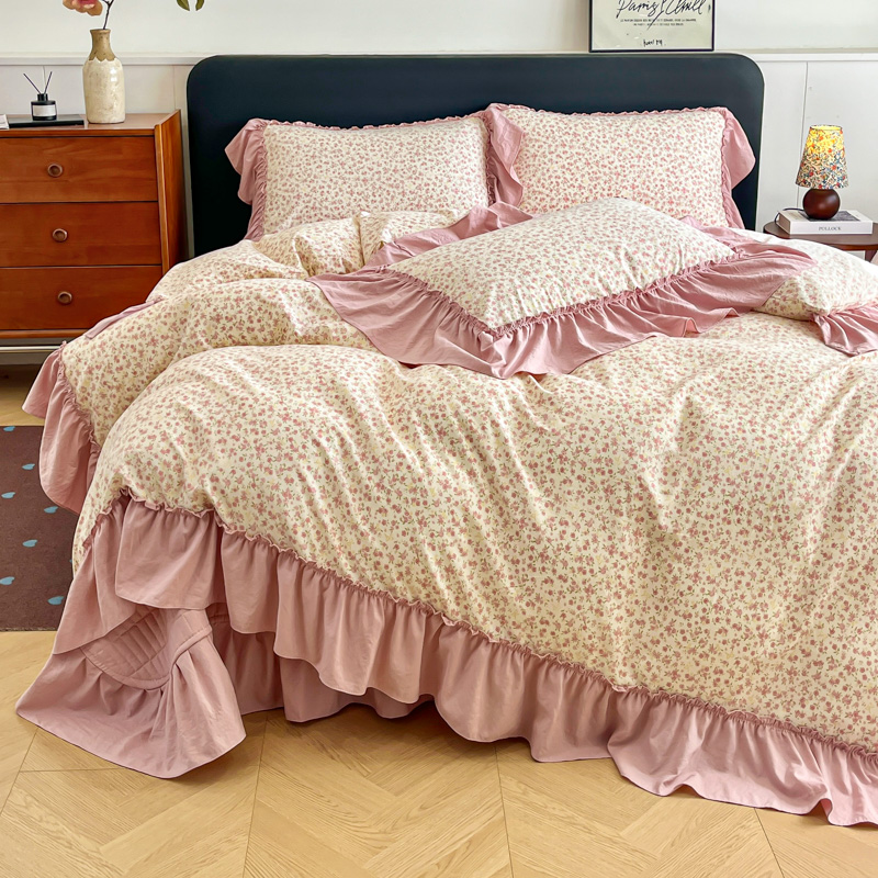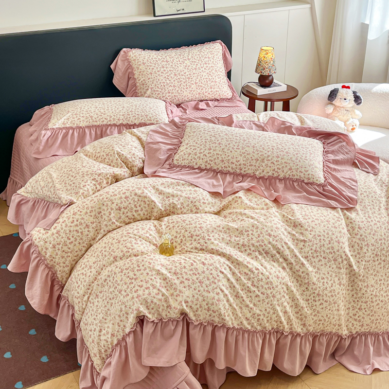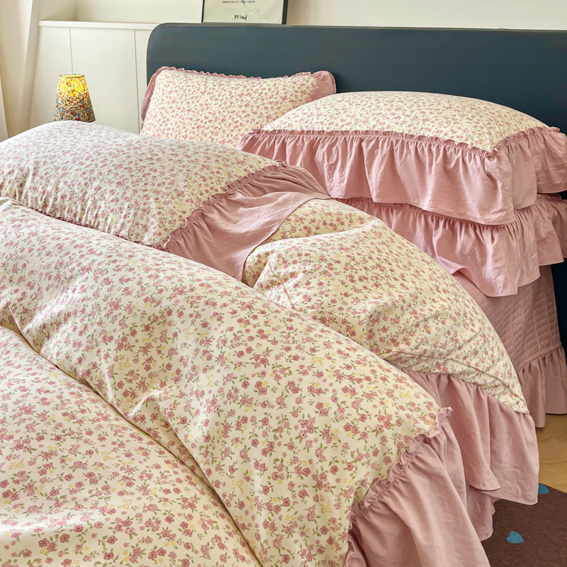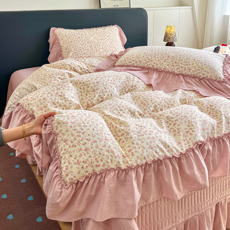 梦可莱家居 2026春夏新品法式复古大花边清新复古卡通系列床盖四件套 满园春色