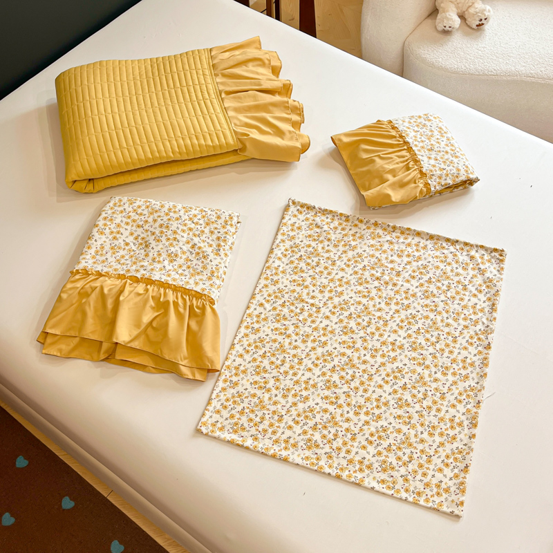 梦可莱家居 2026春夏新品法式复古大花边清新复古卡通系列床盖四件套 小黄花儿