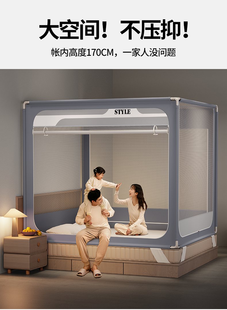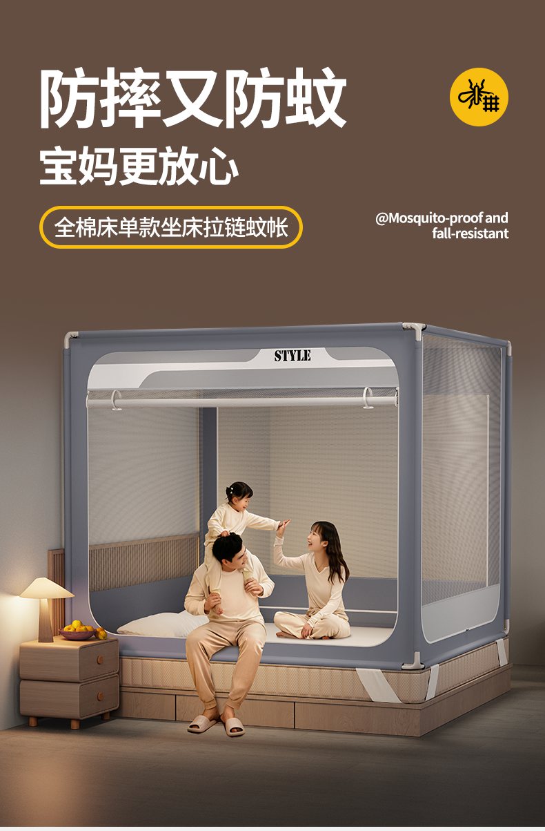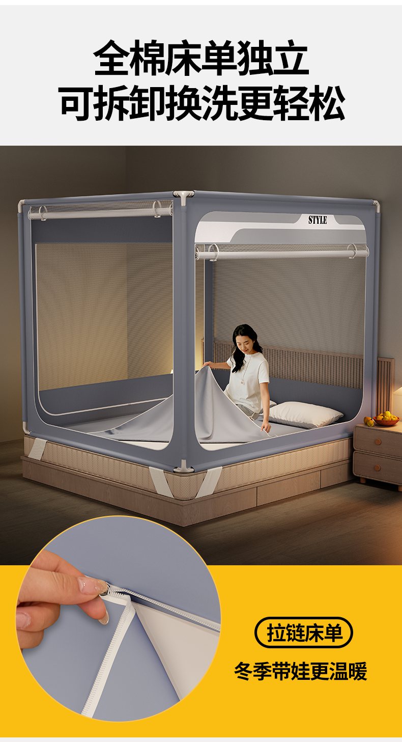 当前位置: 91家纺网 > 商品网购 > 床上用品 > 蚊帐 > 坐床式蚊帐 > (总)星际优品 2026新款坐床蚊帐可拆卸全棉底加厚双股双丝防猫抓帐纱-风格款