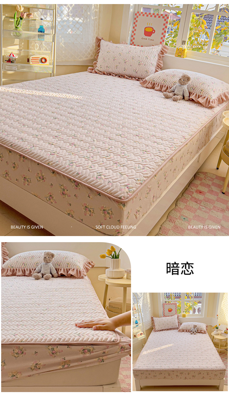 商品名称:纽缦家纺 2026春夏新款云朵提花双层纱夹棉绗缝单床笠 床笠单件 苏瑾