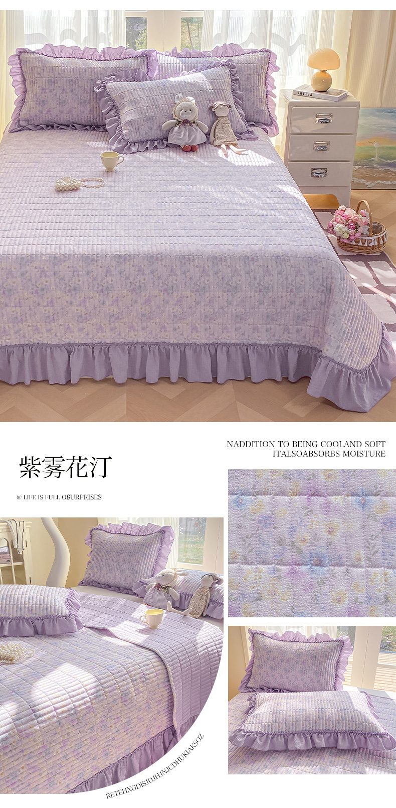 (总)眠势力 2026新款双层纱花边床盖单件加厚夹棉云感皱皱纱大花边床单三件套赫本风,乌梅子酱,宝格风情,墨羽蝶影,水墨蔷薇,雾都繁花,心语告白