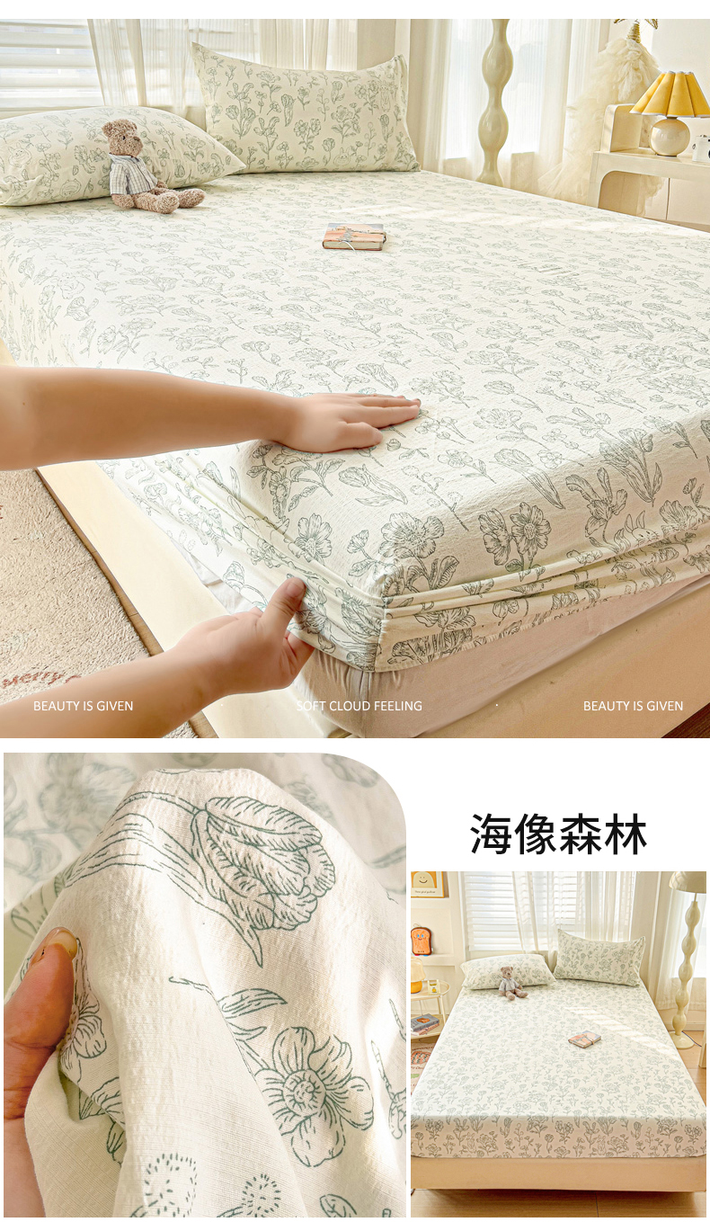 商品名称:纽缦家纺 2026春夏新款云感提花双层纱单床笠 床笠单件 苏瑾