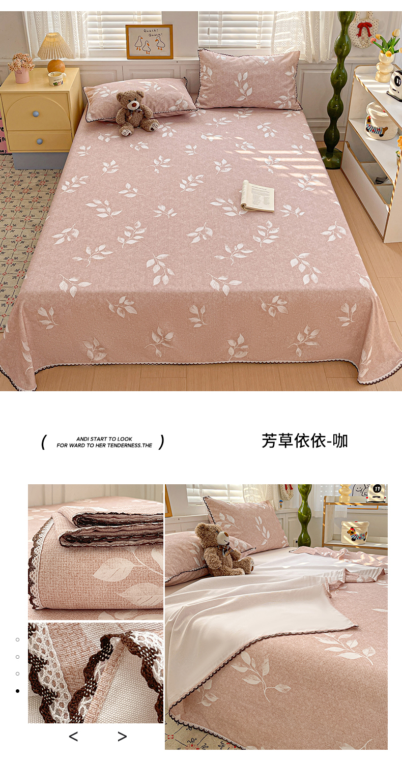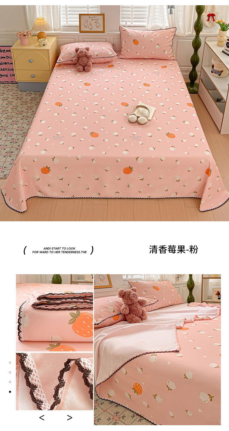 • 91家纺网 家纺一手货源 找家纺 纽缦家纺 2026新款舒适透气细沙卡通印花花边老粗布床单凉席席子 田园小兔-粉