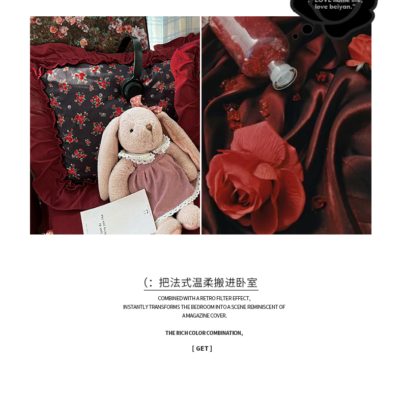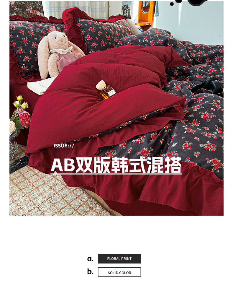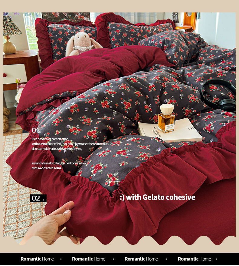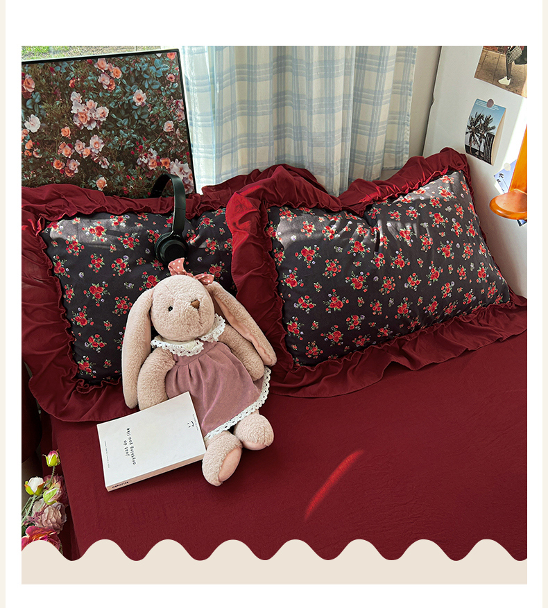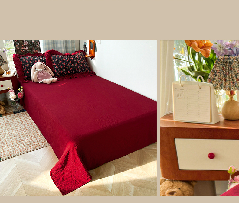 当前位置: 91家纺网 > 商品网购 > 床品套件 > 四件套 > 水洗棉四件套 > 花伞家居 2026新款韩系复古碎花古法水洗棉大花边四件套含买家秀 霓裳-红
