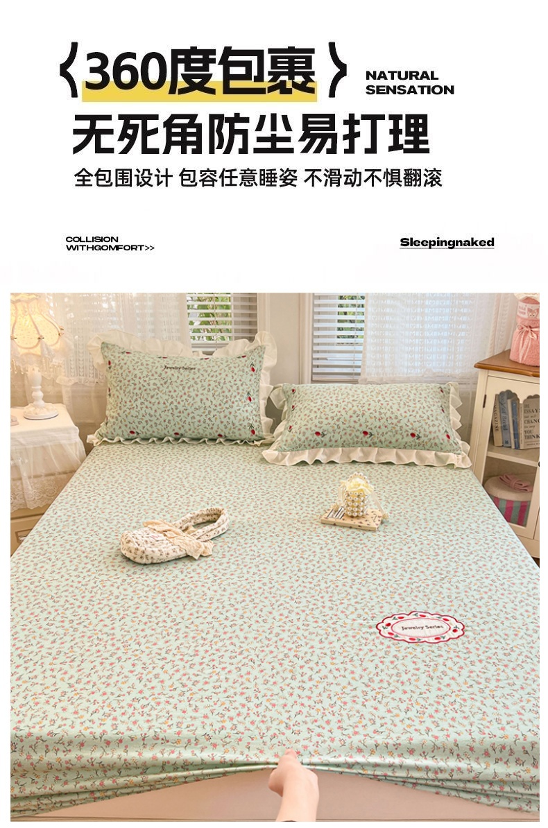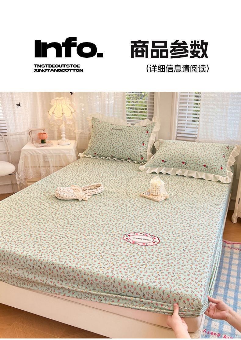 当前位置: 91家纺网 > 商品网购 > 床上用品 > 床笠 > 圣比熊 2026新款A类云朵棉亲肤四季款刺绣床笠席梦思床罩全包床单三件套 薄荷之夏(刺绣款)