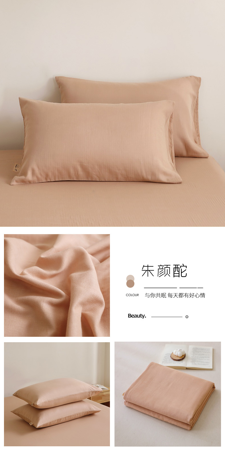 商品名称:晶缦家纺 2026新款纯棉纯色A类全棉双层纱单品枕套枕套单件单枕套(水洗预处理)-觅琳系列 觅琳-朱颜酡